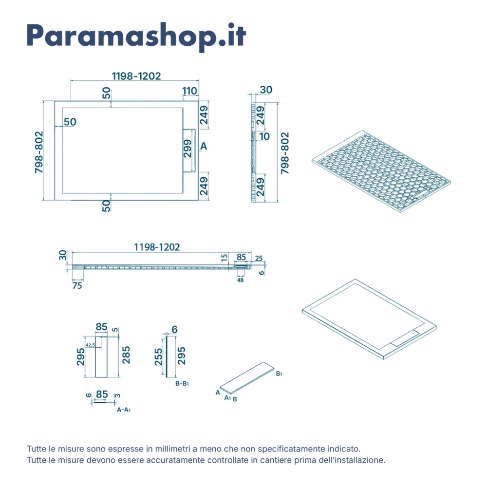 Con un’altezza di soli 3 cm, il modello Delos presenta un design ultrapiatto che si integra armoniosamente con il pavimento, donando una sensazione di continuità e spaziosità all’ambiente. Può essere installato sia filopavimento per un effetto moderno e minimale, sia in appoggio per un montaggio più tradizionale e pratico.