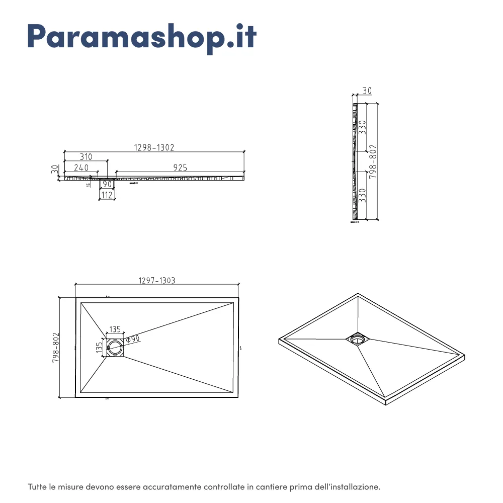 Grazie alla sua superficie antiscivolo, il piatto doccia garantisce la massima sicurezza durante l’utilizzo quotidiano. La sua versatilità è uno dei punti di forza: può essere installato sia a filo pavimento per un effetto moderno e minimal, sia in appoggio. Inoltre, la possibilità di ridurlo su misura lo rende perfetto anche per spazi irregolari o ristrutturazioni personalizzate, assicurando un risultato preciso.