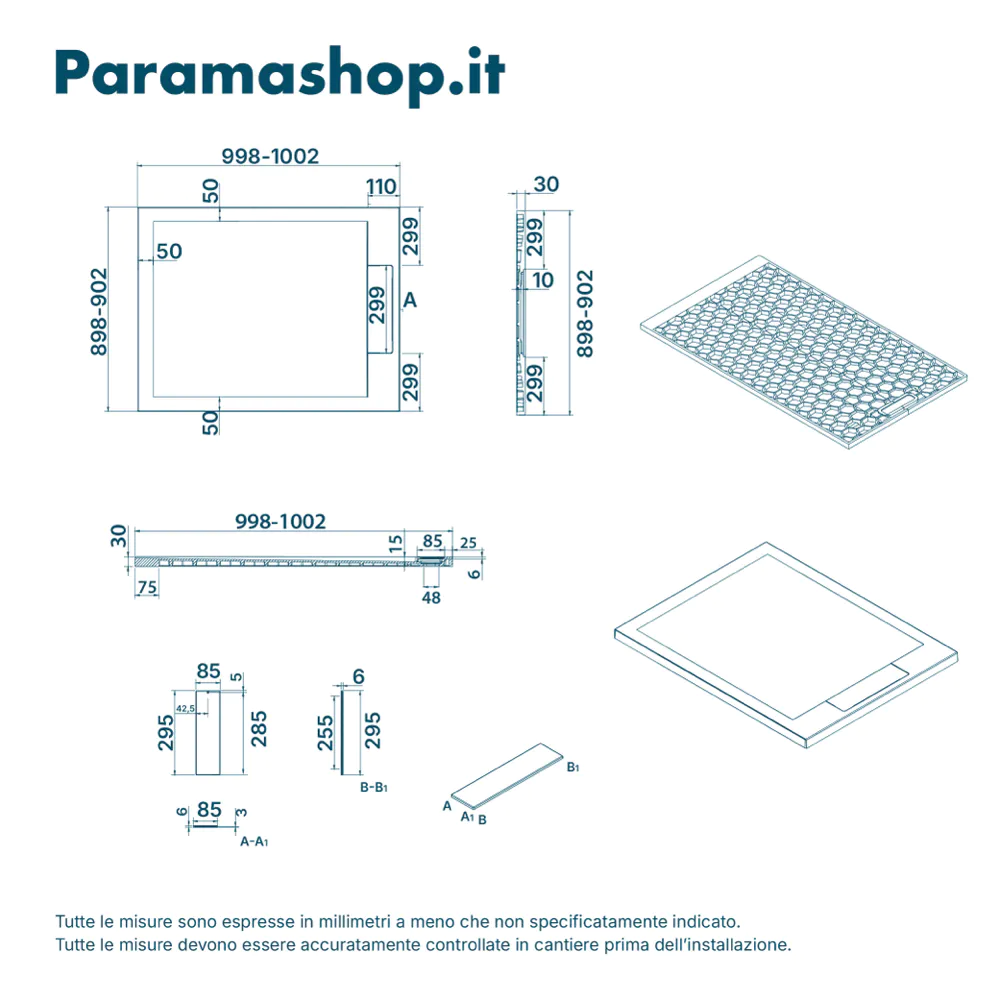 Con un’altezza di soli 3 cm, il modello Delos presenta un design ultrapiatto che si integra armoniosamente con il pavimento, donando una sensazione di continuità e spaziosità all’ambiente. Può essere installato sia filopavimento per un effetto moderno e minimale, sia in appoggio per un montaggio più tradizionale e pratico.