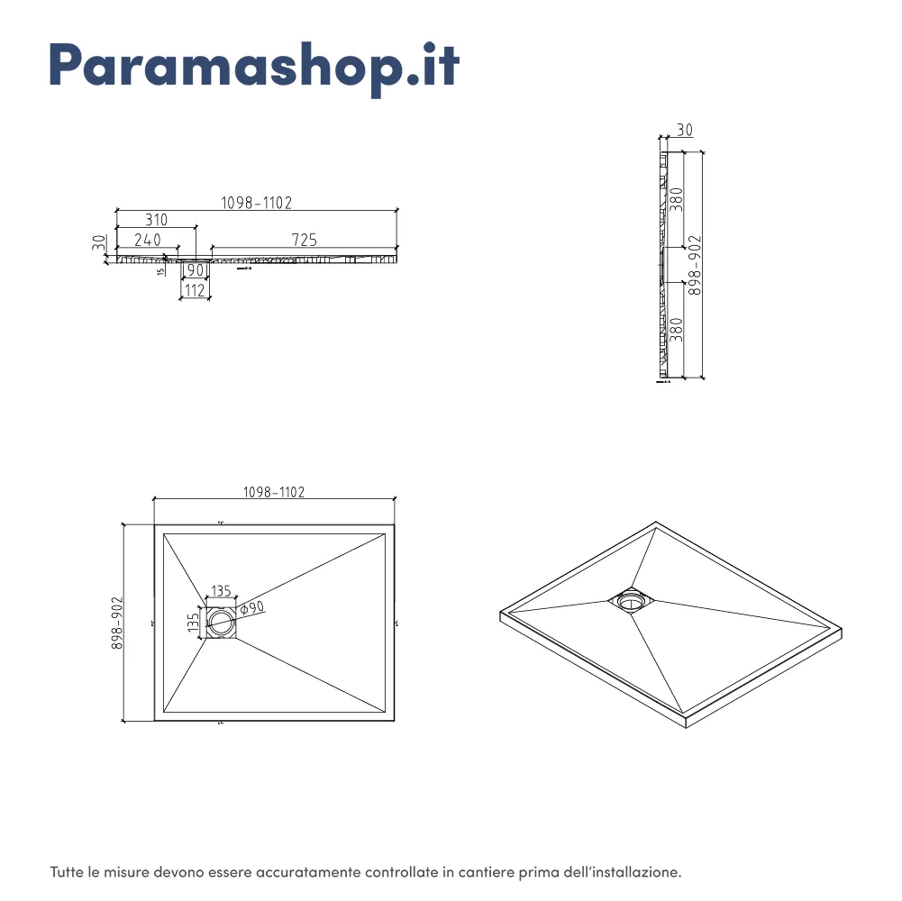 La piletta di scarico non è inclusa, ma è disponibile per l'acquisto separatamente. (Cod. Art. AI01DRA002)