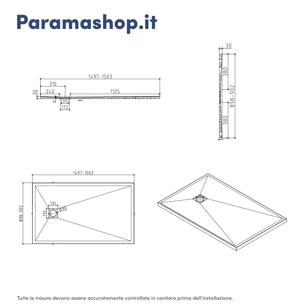 Grazie alla sua superficie antiscivolo, il piatto doccia garantisce la massima sicurezza durante l’utilizzo quotidiano. La sua versatilità è uno dei punti di forza: può essere installato sia a filo pavimento per un effetto moderno e minimal, sia in appoggio. Inoltre, la possibilità di ridurlo su misura lo rende perfetto anche per spazi irregolari o ristrutturazioni personalizzate, assicurando un risultato preciso.