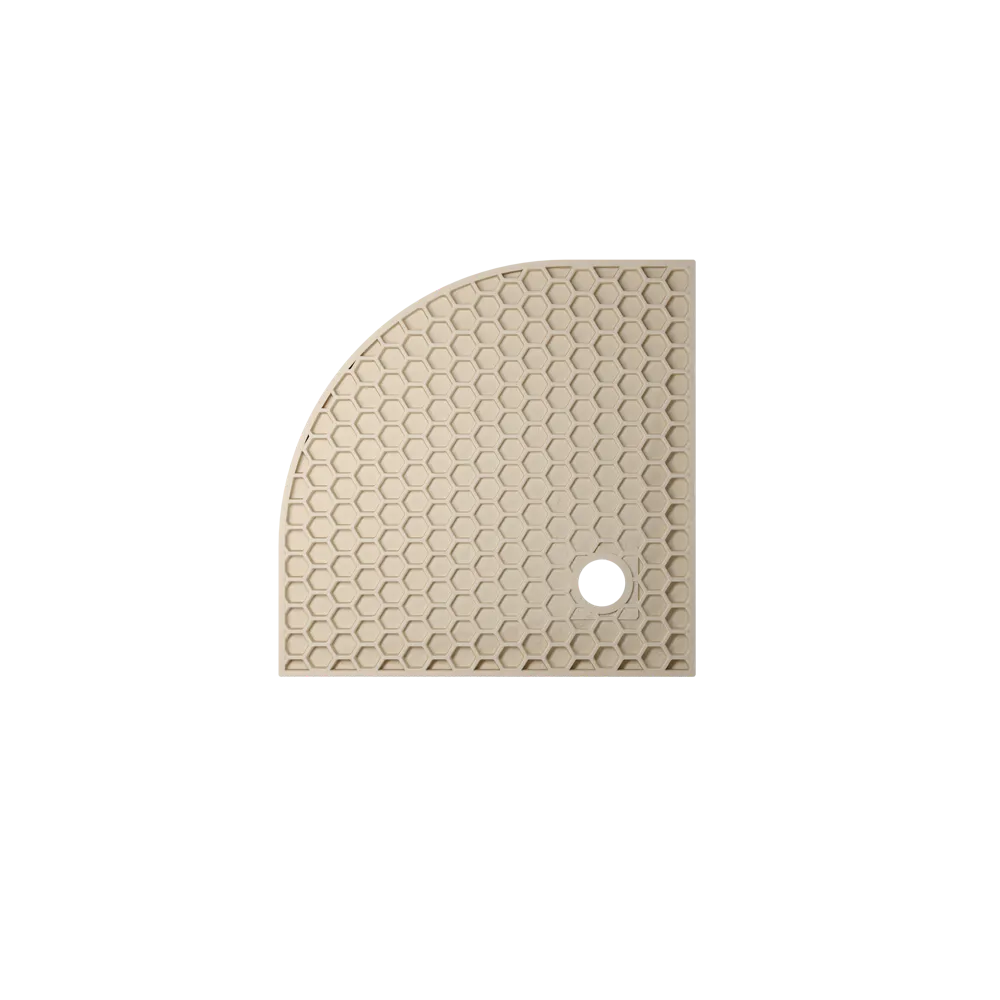 Il piatto doccia semicircolare avorio 90x90 modello Milos è prodotto in marmoresina ad alta compattezza, combinando proprietà antiscivolo e robustezza strutturale, per garantire performance elevate e adattabilità in diversi contesti installativi.