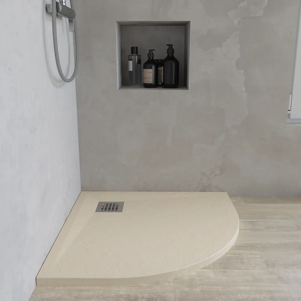 Piatto doccia semicircolare 90x90 cm in marmoresina avorio effetto pietra h3 cm | Milos