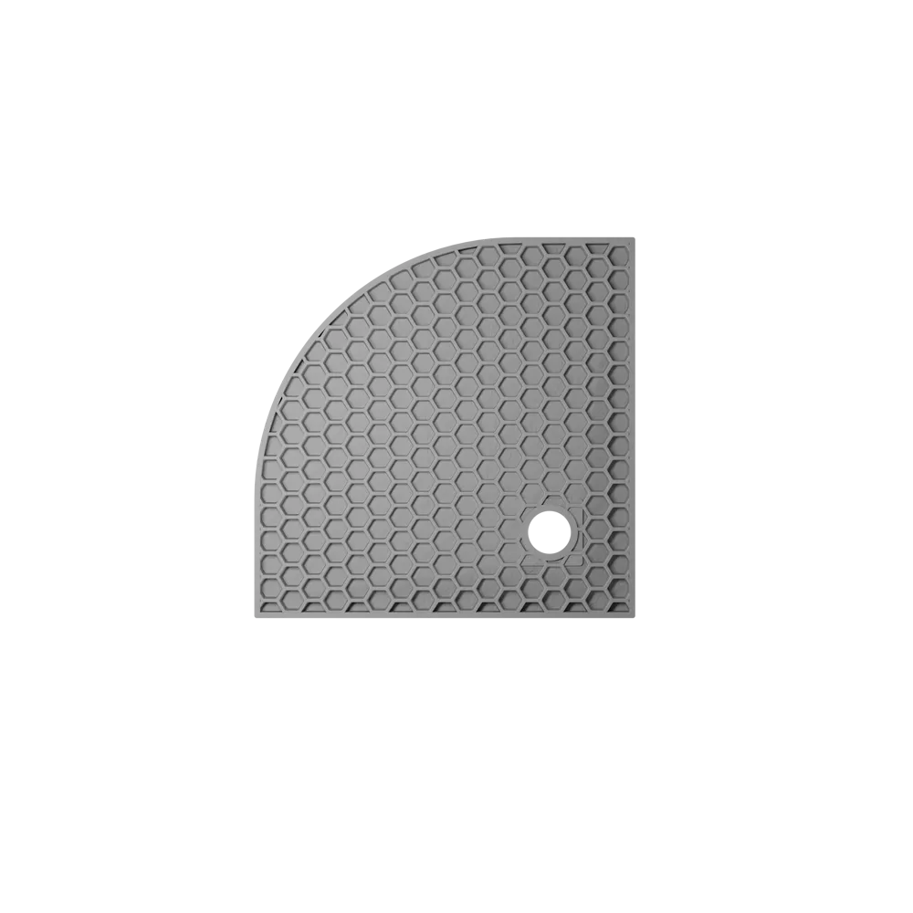 Il piatto doccia semicircolare grigio chiaro 90x90 modello Milos è prodotto in marmoresina ad alta compattezza, combinando proprietà antiscivolo e robustezza strutturale, per garantire performance elevate e adattabilità in diversi contesti installativi.