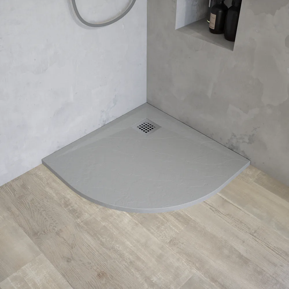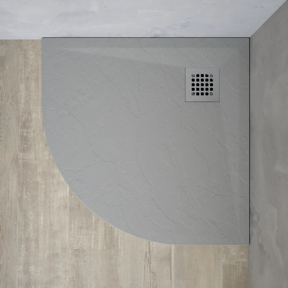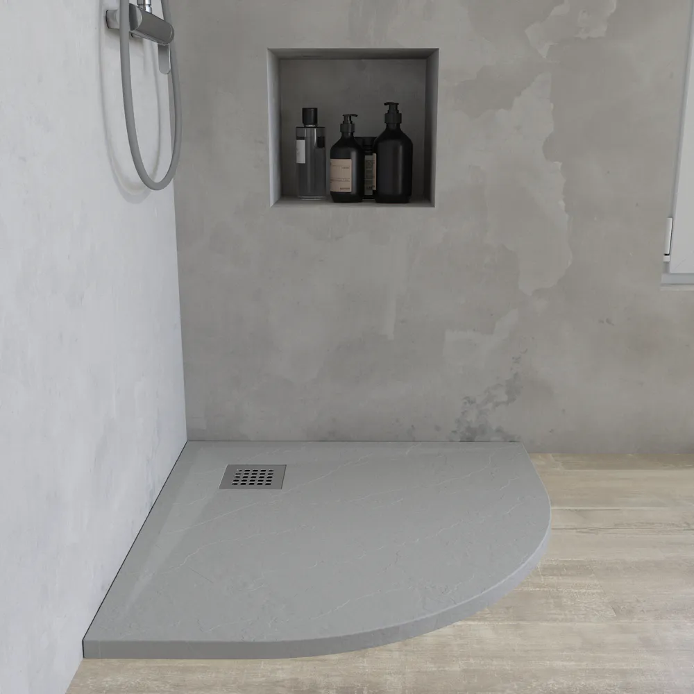 Piatto doccia semicircolare 90x90 cm in marmoresina grigio chiaro effetto pietra h3 cm | Milos
