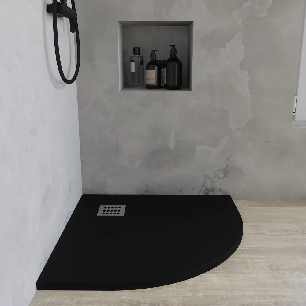 Piatto doccia semicircolare 90x90 cm in marmoresina nero effetto pietra h3 cm | Milos