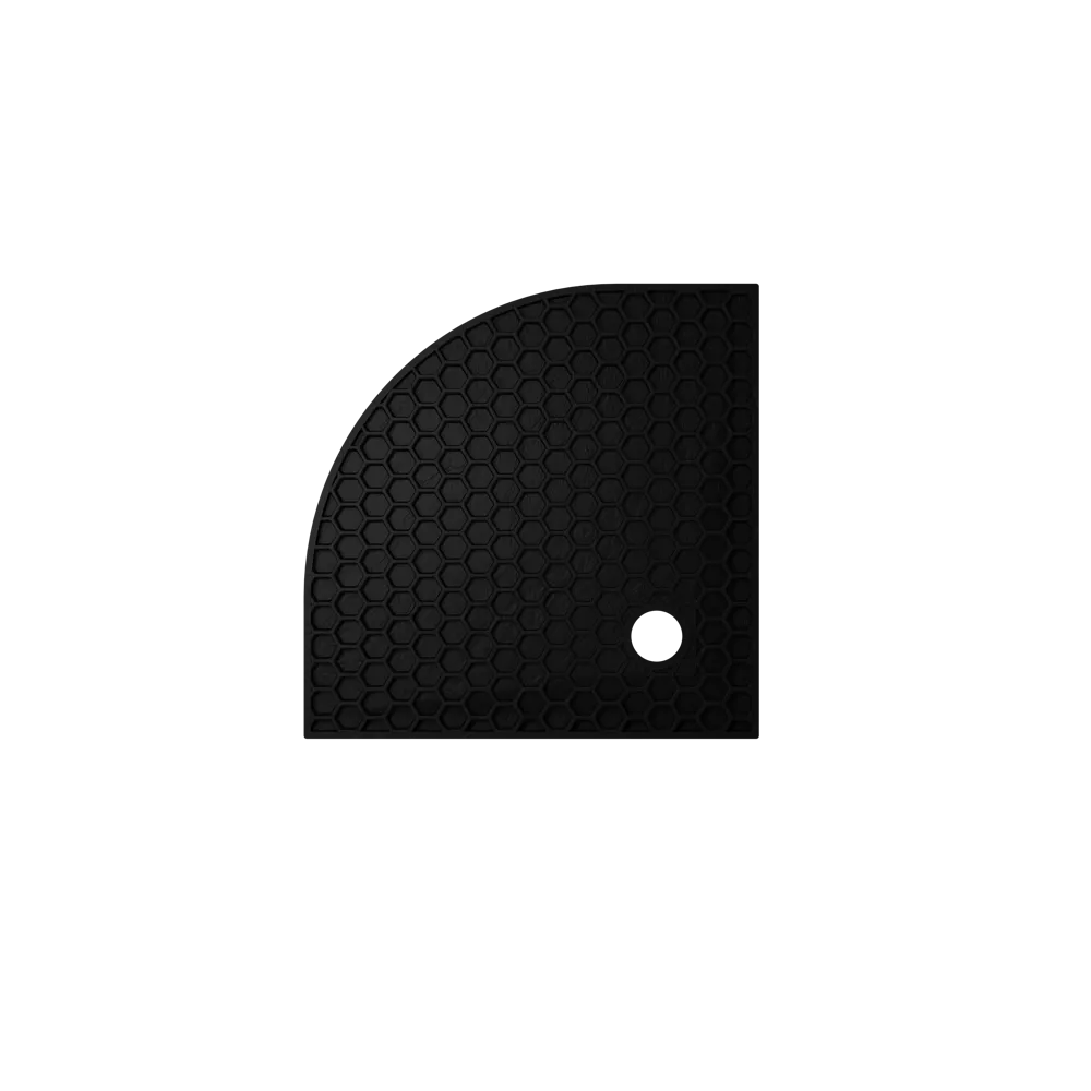 Il piatto doccia semicircolare nero 90x90 modello Milos è prodotto in marmoresina ad alta compattezza, combinando proprietà antiscivolo e robustezza strutturale, per garantire performance elevate e adattabilità in diversi contesti installativi.