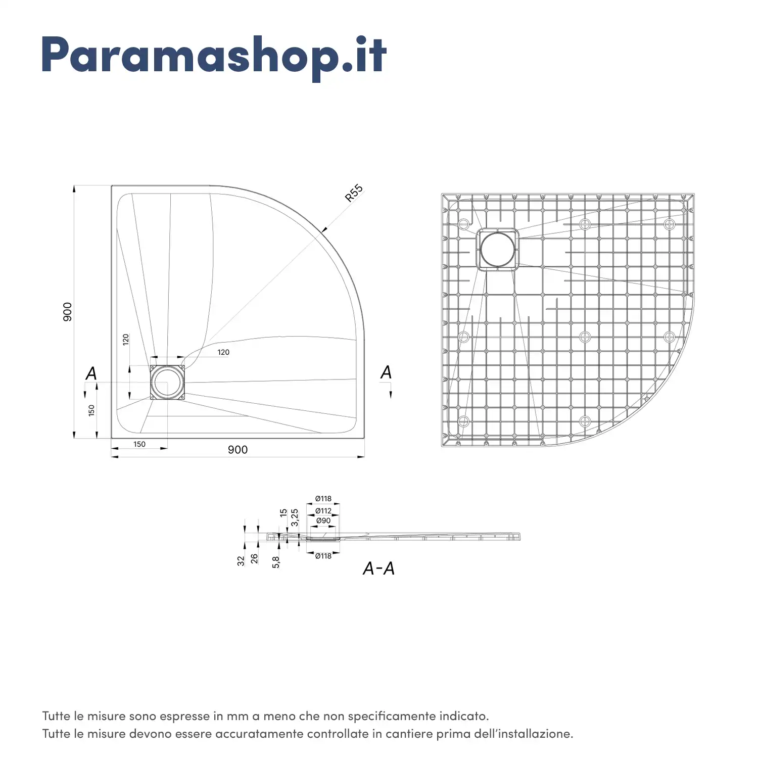 La piletta di scarico non è inclusa nel prezzo ma potrai acquistarla separatamente (codice prodotto: AI01DRA002).
