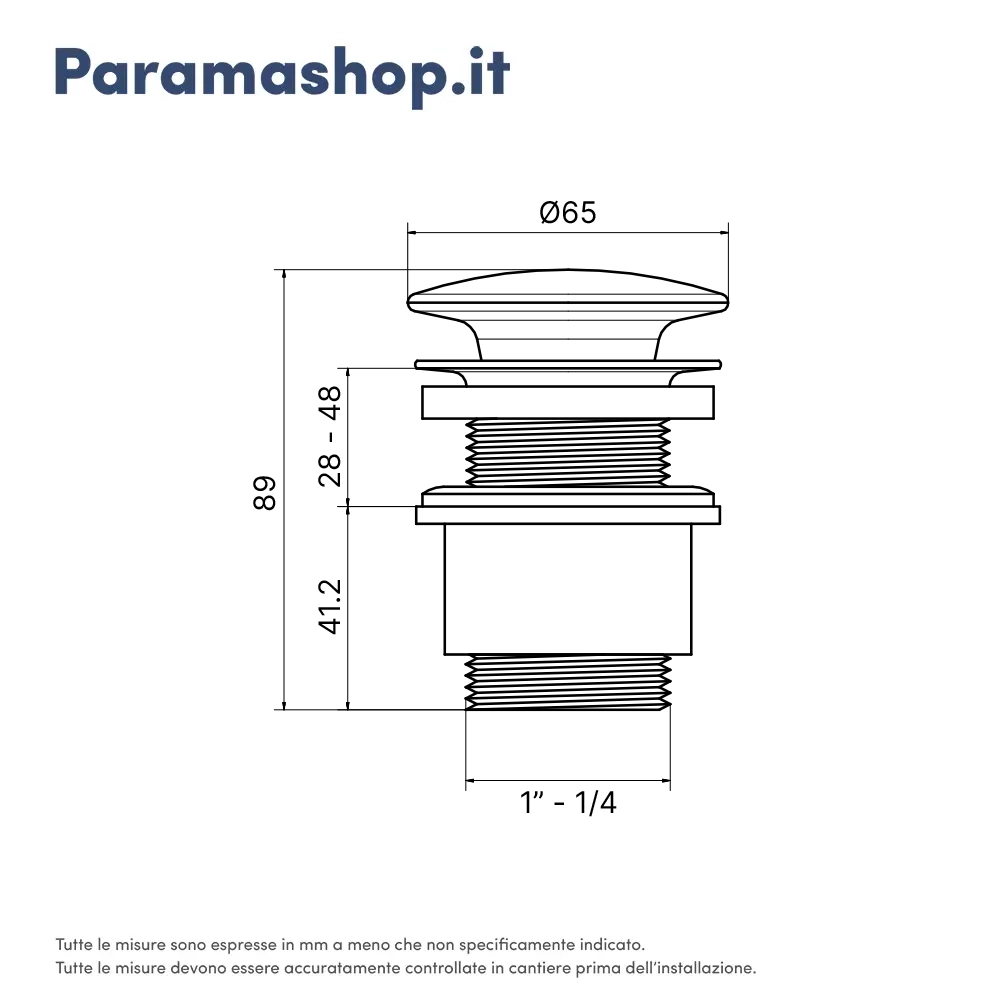 La piletta di scarico universale click-clack con troppo pieno modello Frera è stata progettata sulla misura standard di 1” ¼ per fornire la massima compatibilità con ogni tipologia di lavabo e di bidet. Questa piletta firmata Parama presenta un corpo interamente in ottone cromato ed un tappo in ceramica bianca che apporterà un tocco in più al tuo ambiente bagno, garantendo un'eccellente tenuta ed utilizzo grazie all’elevata qualità dei materiali impiegati.
