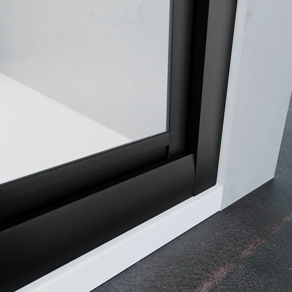 Oltre alla funzionalità, Apulia si distingue anche per la qualità dei materiali utilizzati. I profili in alluminio anodizzato nero opaco garantiscono una durata eccezionale e una resistenza alla corrosione. Questo assicura che il tuo porta doccia mantenga il suo aspetto elegante e raffinato nel tempo, senza richiedere particolari manutenzioni.