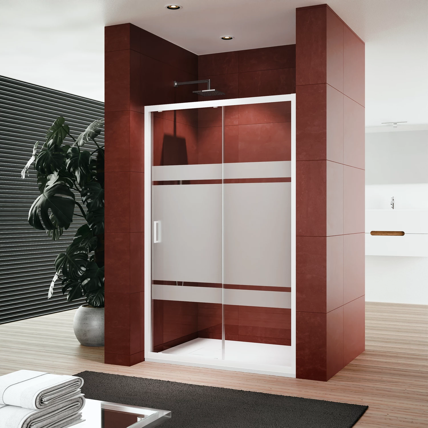 La sua struttura ed i suoi dettagli di colore bianco, con il vetro impreziosito da tre serigrafature centrali, regaleranno un tocco di luminosità al tuo ambiente bagno generando un contesto di design moderno ed elegante.