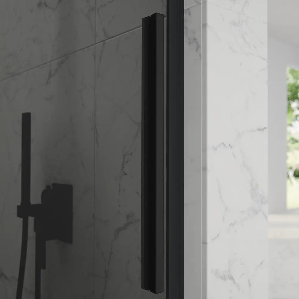 L'apertura del box doccia è facilitata da una comoda e fine maniglia realizzata in metallo con finitura nera opaca. L'installazione è reversibile, la nicchia doccia Creta da 110 cm può essere installata sia filopavimento sia in appoggio su piatto doccia. Inoltre, grazie ai profili regolabili questo box doccia può adattarsi in nicchie da 107-109,5. L'altezza è di 195cm.