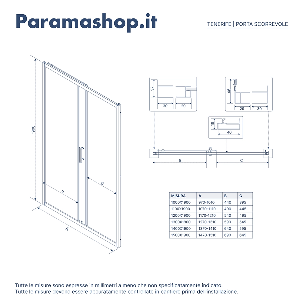 Porta doccia 150cm reversibile scorrevole vetro 6mm trasparente h190 | Tenerife