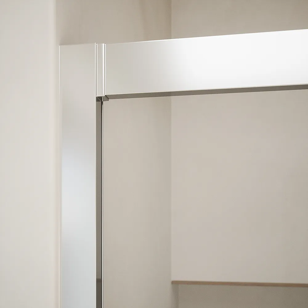 Questo box doccia per nicchia nella misura da 150cm si caratterizza per le sue linee eleganti adatte ad ogni tipologia di arredo bagno: dal tradizionale al moderno. La struttura è realizzata con profili in alluminio cromato e vetro temperato da 6mm con finitura trasparente certificato EN12150-1. Il trattamento anticalcare applicato sui cristalli temperati agevola la pulizia e contrasta la formazione dei depositi di calcare.
