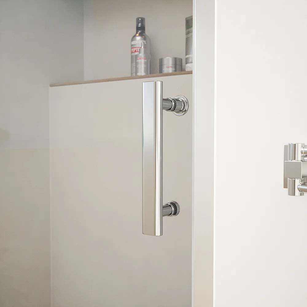 L'installazione è reversibile pertanto può essere effettuata sia con orientamento a destra che a sinistra. E' prevista inoltre una tolleranza di -2cm per lato per pareti con fuori squadro. Le due maniglie in dotazione sono poi realizzate in acciaio inox SUS304.