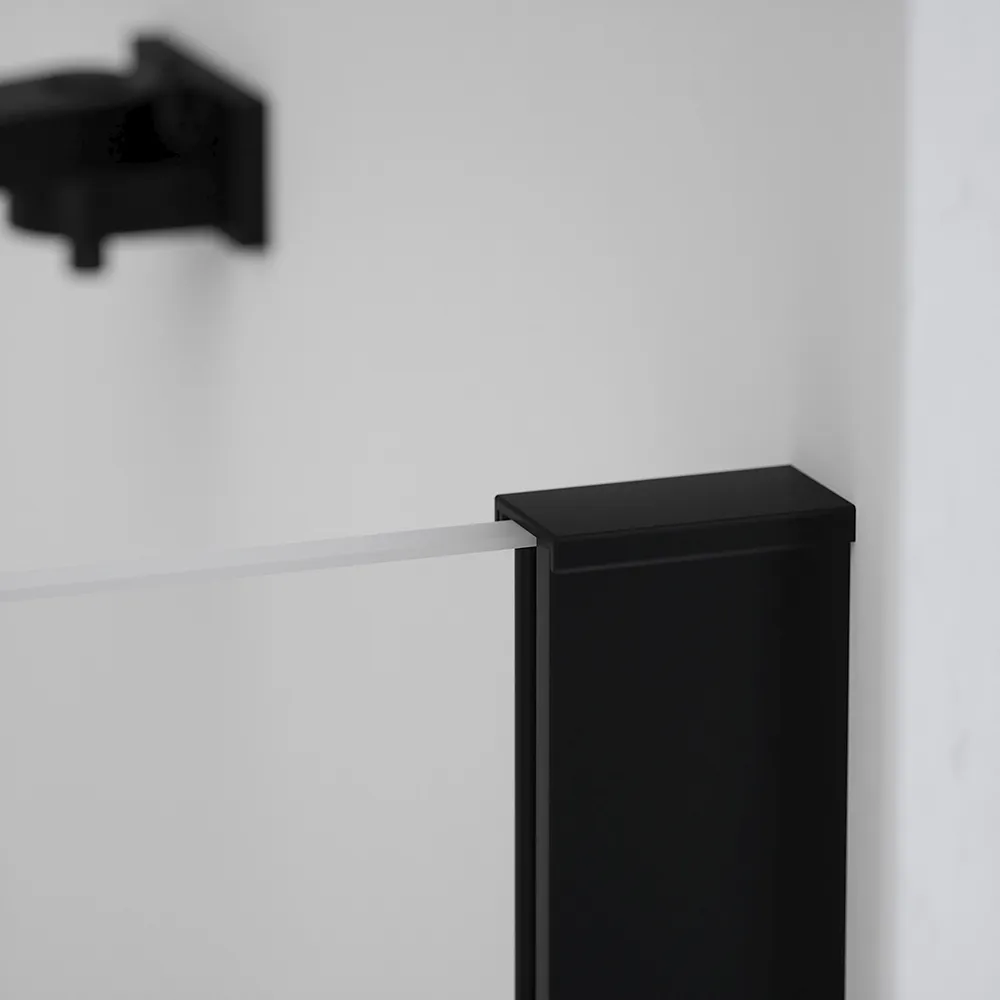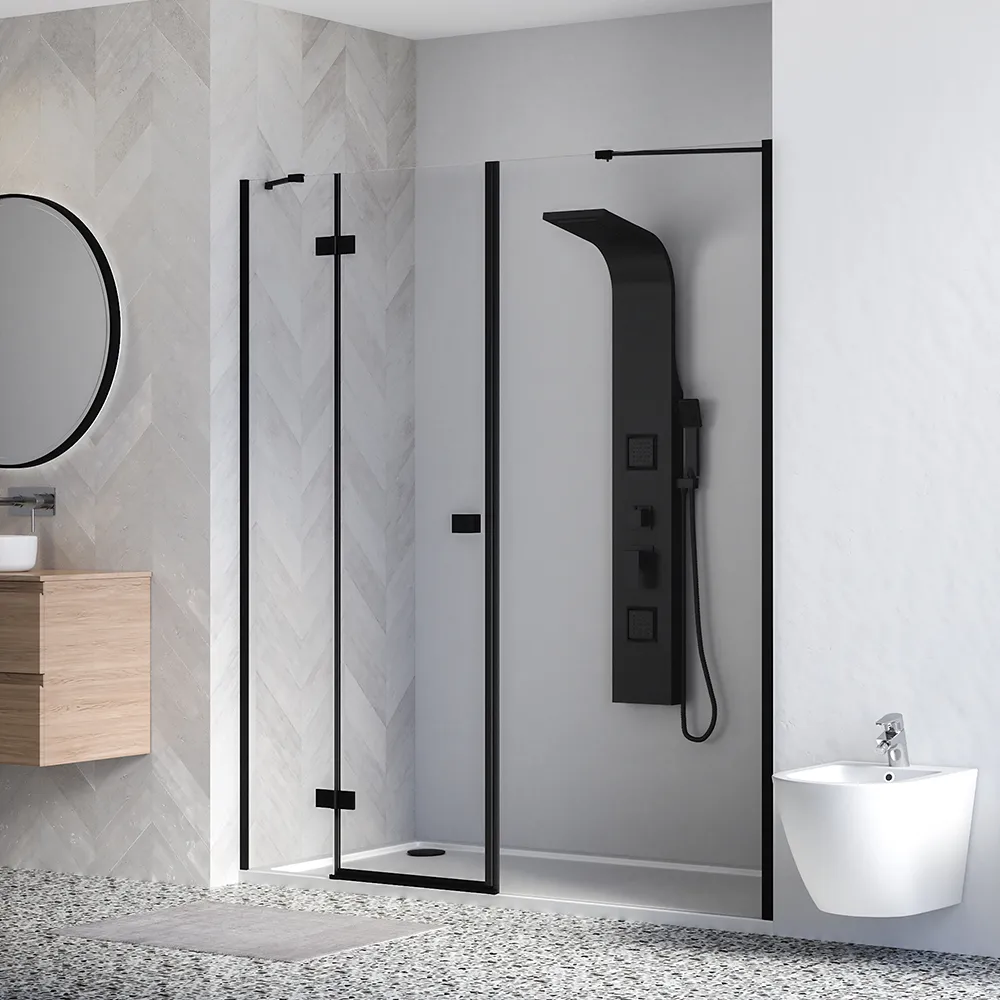 Porta doccia 161-165cm profili nero opaco apertura battente a sinistra con cerniere e parete fissa vetro 8mm trasparente h195 | Fiji