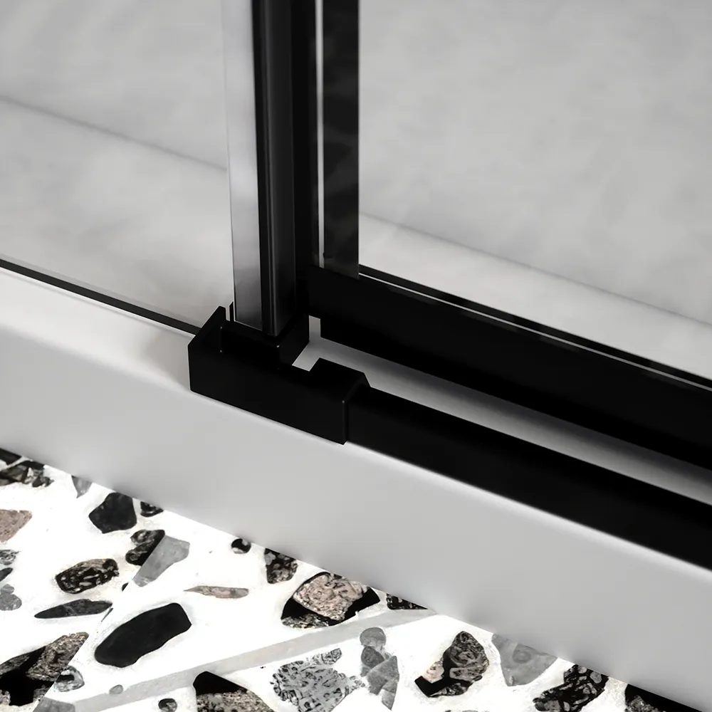 Le cerniere in ottone garantiscono una struttura solida e resistente all’usura, contribuendo alla durata nel tempo del prodotto. I profili in alluminio nero opaco aggiungono un tocco di eleganza e modernità, offrendo al contempo un’elevata resistenza alla corrosione e agli agenti esterni.
