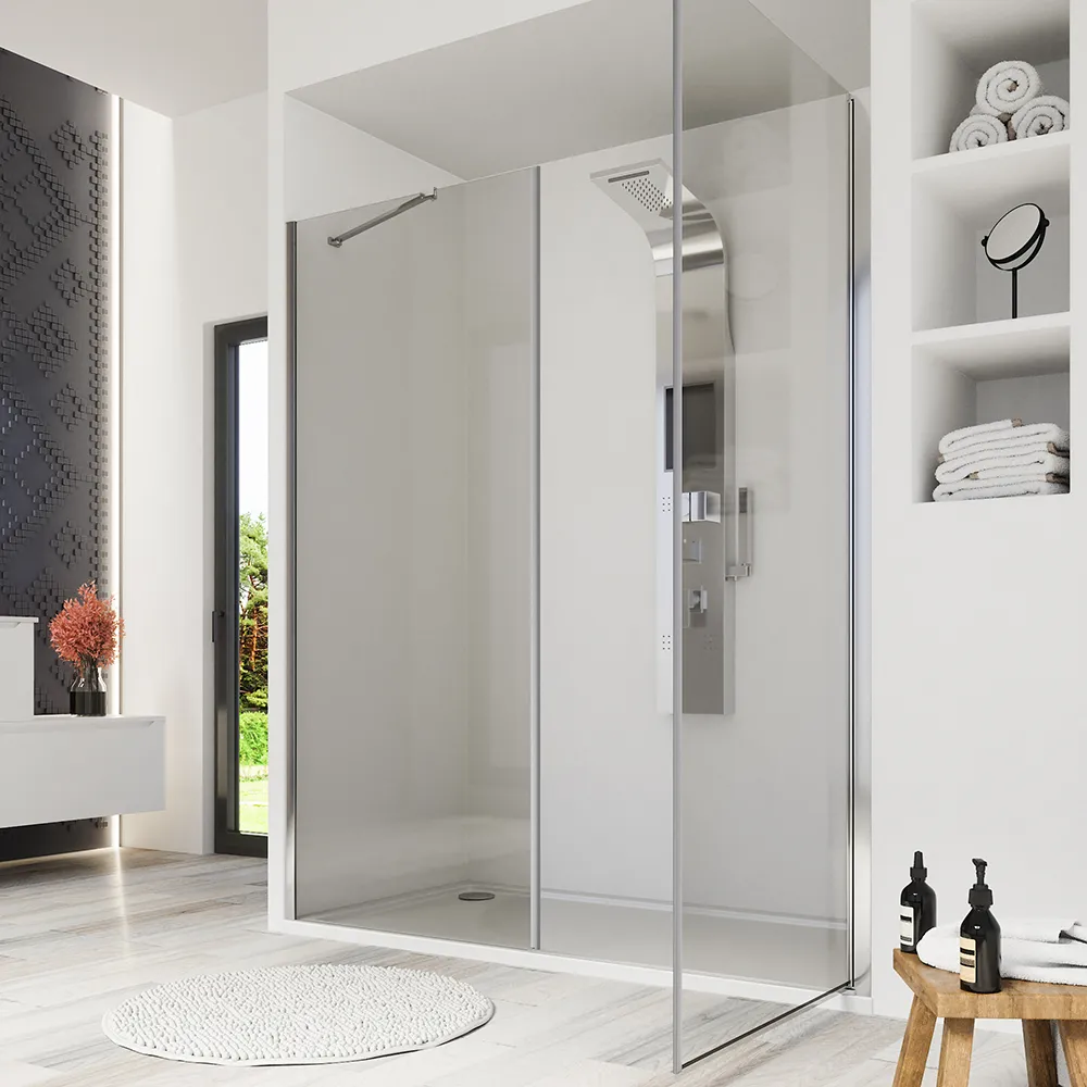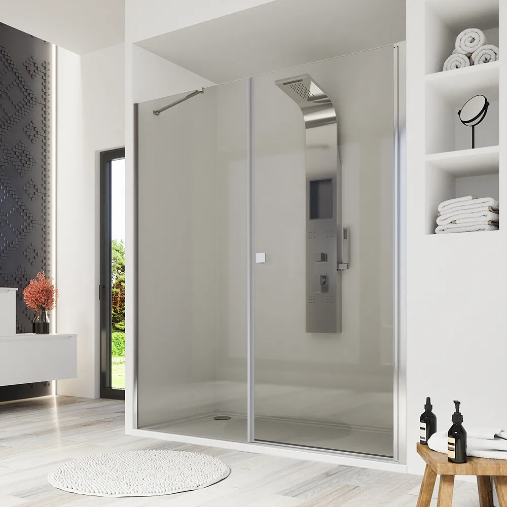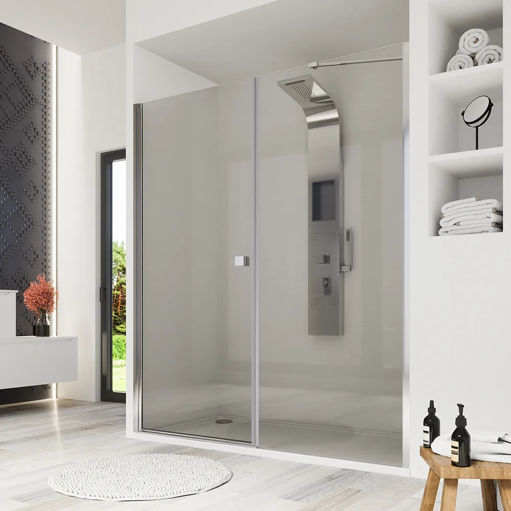Realizzata con vetro temperato trasparente da 8 mm, questa porta doccia offre un’elevata resistenza agli urti, assicurando massima sicurezza e durata nel tempo. Il trattamento anticalcare crea una superficie liscia che respinge l’acqua e i residui di sapone, riducendo la formazione di calcare e facilitando la pulizia. Grazie a questa tecnologia, il vetro mantiene la sua trasparenza e brillantezza più a lungo, migliorando l’estetica e riducendo la manutenzione.