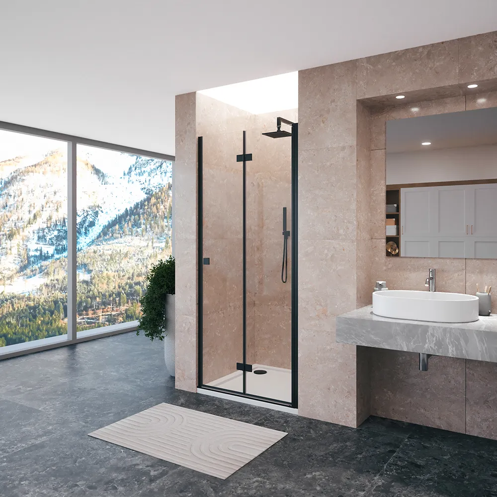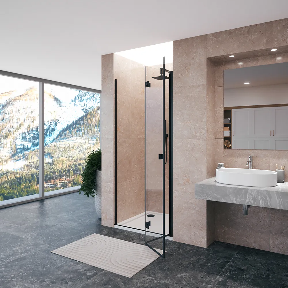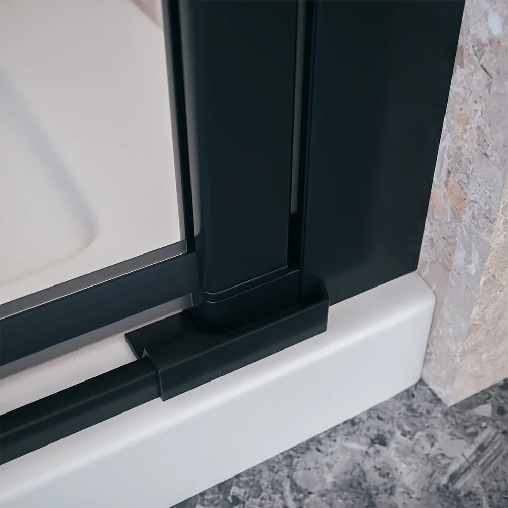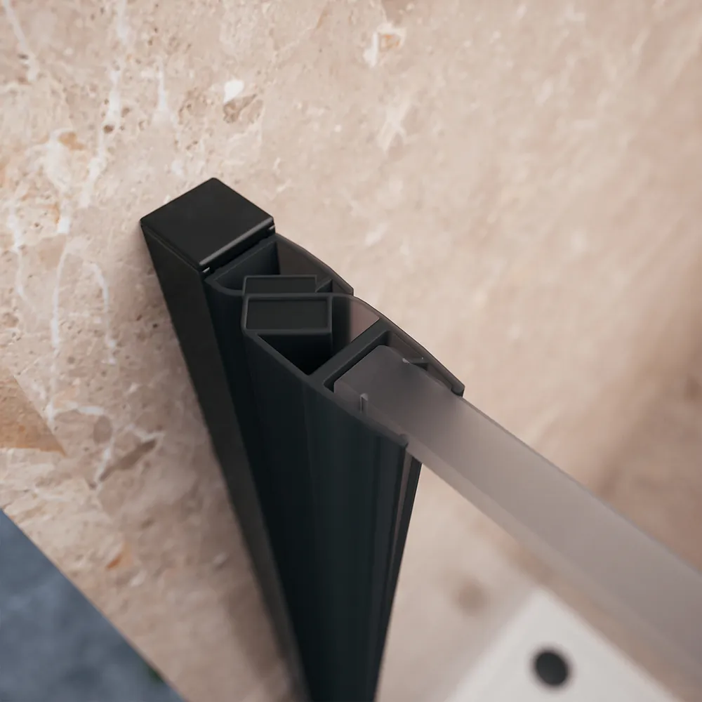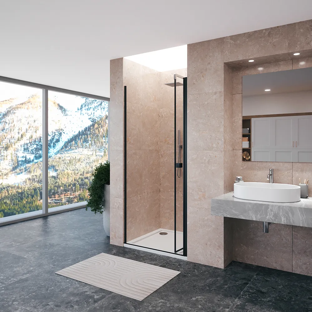 I profili in alluminio nero opaco aggiungono un tocco di raffinatezza e modernità alla porta doccia. Grazie alla loro solidità, questi profili conservano a lungo l’aspetto estetico e offrono una durabilità eccellente anche in ambienti umidi come il bagno.