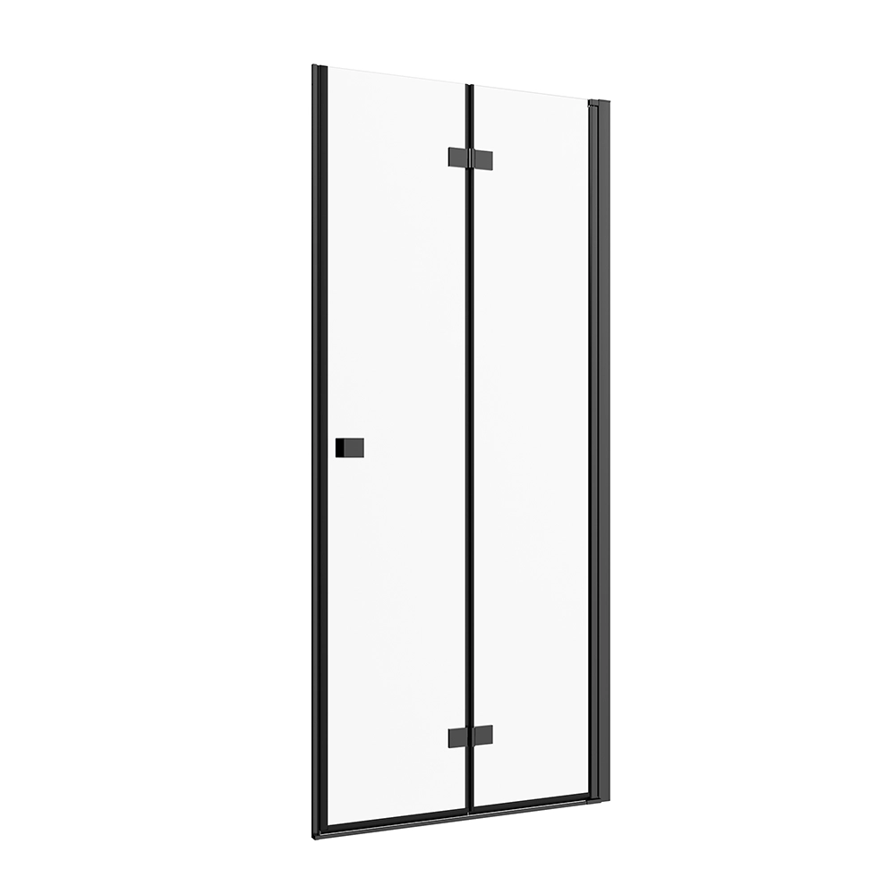Porta doccia 70cm apertura a libro lato destro con profili nero opaco e vetro da 8mm trasparente h195 | Fiji