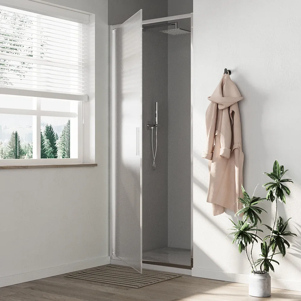 La porta a battente si apre verso l'esterno, offrendo un accesso ampio e comodo al tuo spazio doccia. Questa soluzione è ideale per chi desidera un’entrata senza ostacoli, consentendo un facile ingresso e uscita. L’apertura a battente è perfetta per chi preferisce un design classico senza compromettere la modernità.
