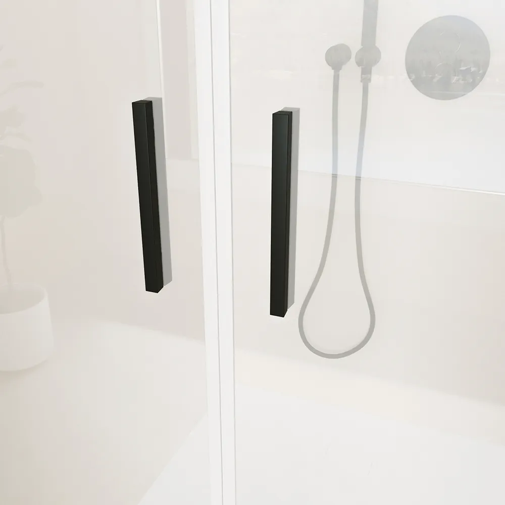 L'elemento distintivo di questa porta doccia sono i suoi profili slim realizzati in alluminio con finitura nero opaco. Il loro design minimal lo rende estremamente elegante e contemporaneo. Il vetro temperato trasparente da 6 mm consente alla luce di entrare, rendendo l’ambiente più luminoso e accogliente.