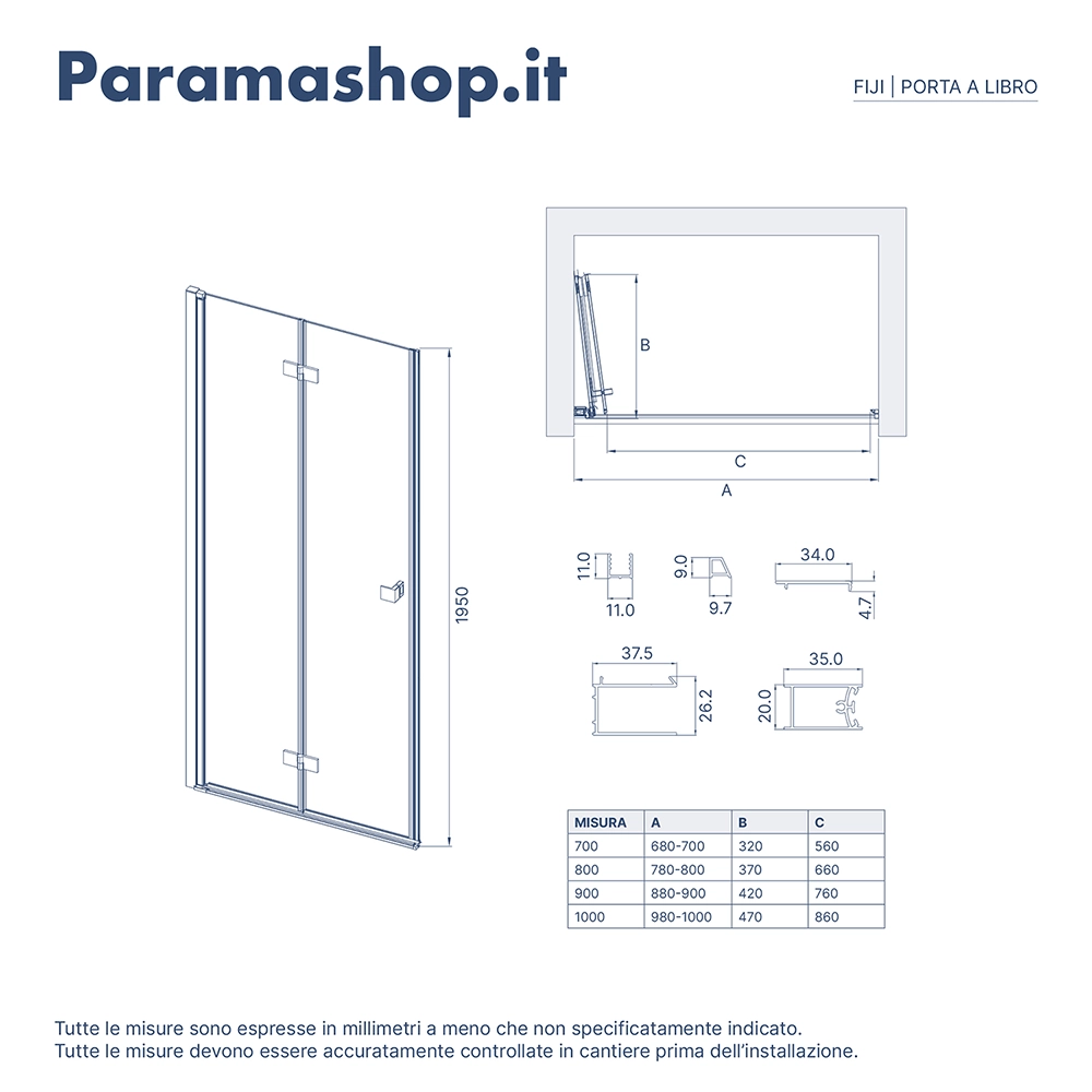 Porta doccia 90cm apertura a libro lato sinistro con profili cromati e vetro da 8mm trasparente h195 | Fiji