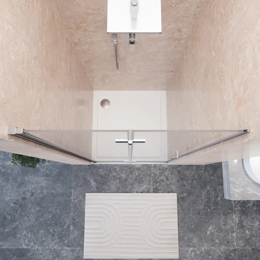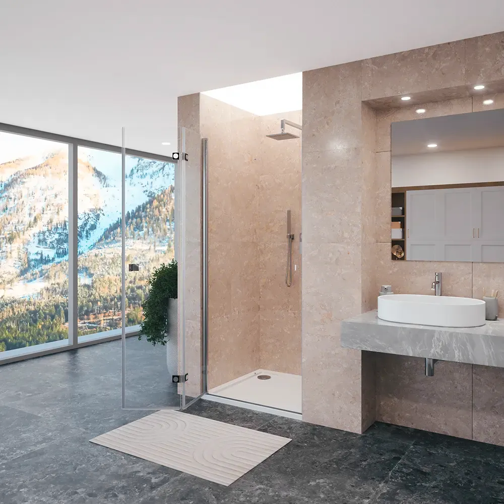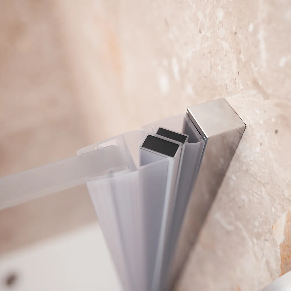 La porta a libro con apertura a sinistra è una soluzione pratica ed efficiente per ottimizzare lo spazio in bagno. Perfetta per ambienti con spazi ristretti, permette un ingresso e uscita agevoli dalla zona doccia. L'altezza di 195cm assicura una protezione totale contro gli schizzi d'acqua, mantenendo il bagno asciutto e ordinato.