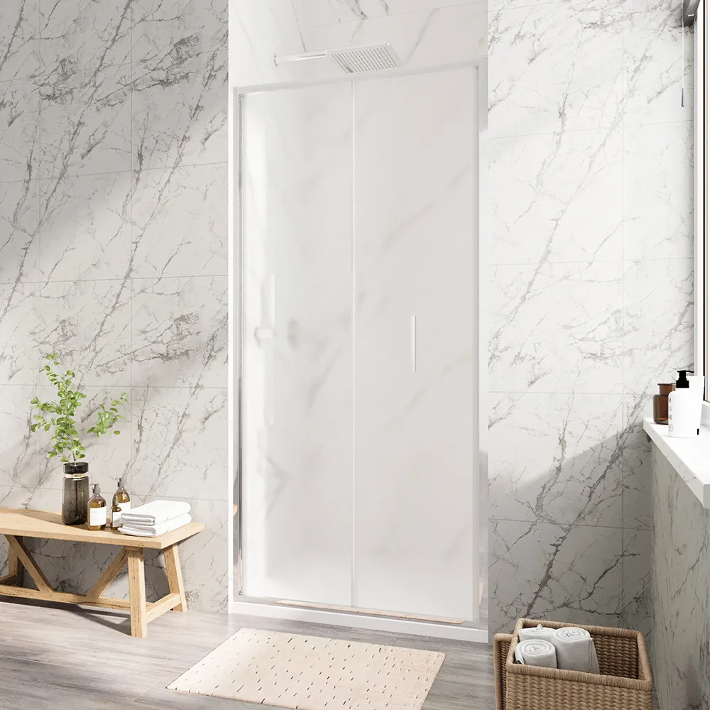 Porta doccia 90cm con apertura a libro profili slim cromati vetro 6mm opaco h190 | Portofino