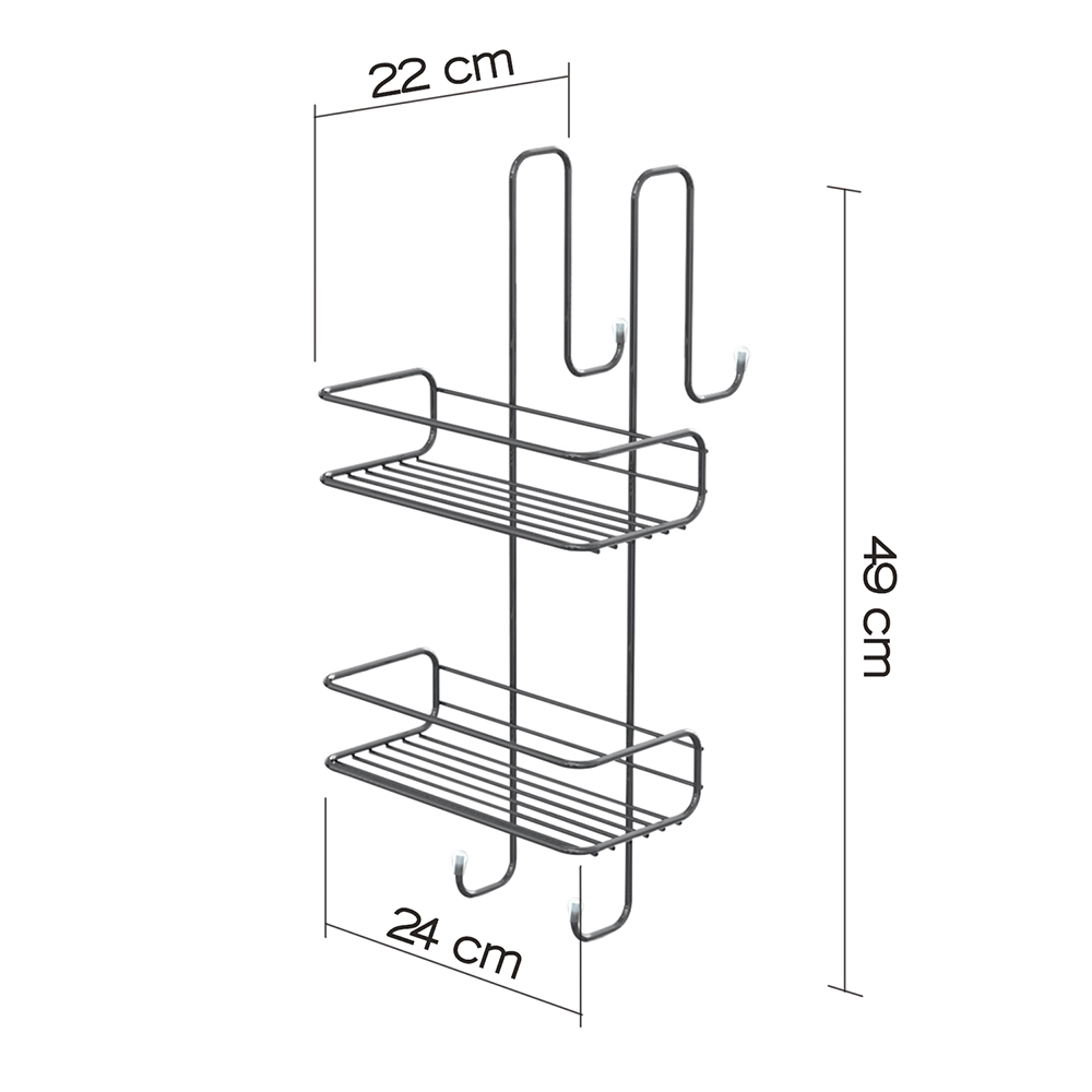 I due ripiani, spaziosi e funzionali, permettono di riporre comodamente shampoo, bagnoschiuma e altri accessori da doccia. Con le sue dimensioni di 24x22cm e un'altezza di 49cm, si appende facilmente al supporto, sfruttando al massimo lo spazio disponibile senza bisogno di forare le pareti. La sua forma più squadrata conferisce un aspetto moderno e lineare, rendendolo ideale per chi cerca soluzioni semplici ma di forte impatto estetico. Perfetto per chi cerca praticità e design in un solo prodotto.