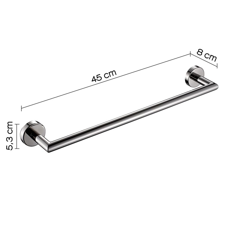 La misura da 45cm lo rende compatto e ideale per ambienti più piccoli o per essere montato in spazi stretti, senza rinunciare alla capacità di tenere in ordine gli asciugamani.
