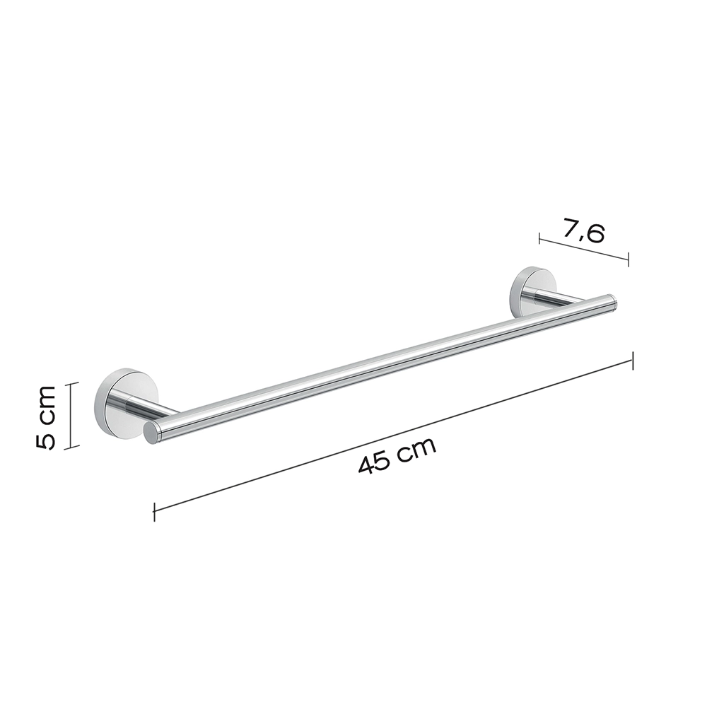 Eros è la soluzione pratica ed elegante per l'organizzazione del tuo bagno che coniuga funzionalità e forme tondeggianti senza tempo. Il suo design moderno si sposa alla perfezione con qualsiasi tipologia di arredamento. La sua lunghezza utile di 45 cm offre la perfetta dimensione per riporre comodamente gli asciugamani.