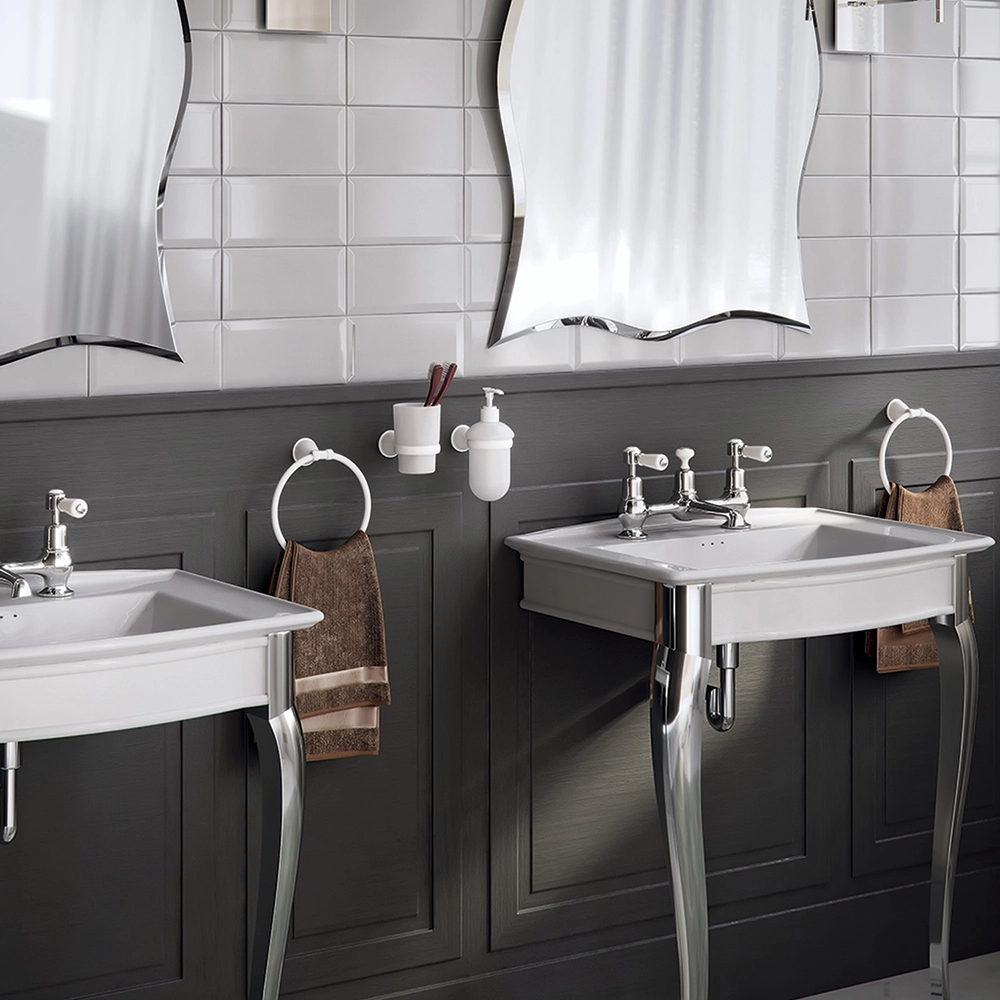 La finitura bianca di elevata fattura è realizzata con tecnologia Cromall, che garantisce una superficie resistente alla corrosione e persistente nel tempo. Genziana è quindi l'ideale per chi desidera un portasalviette pratico, comodo e dal design sempreverde.