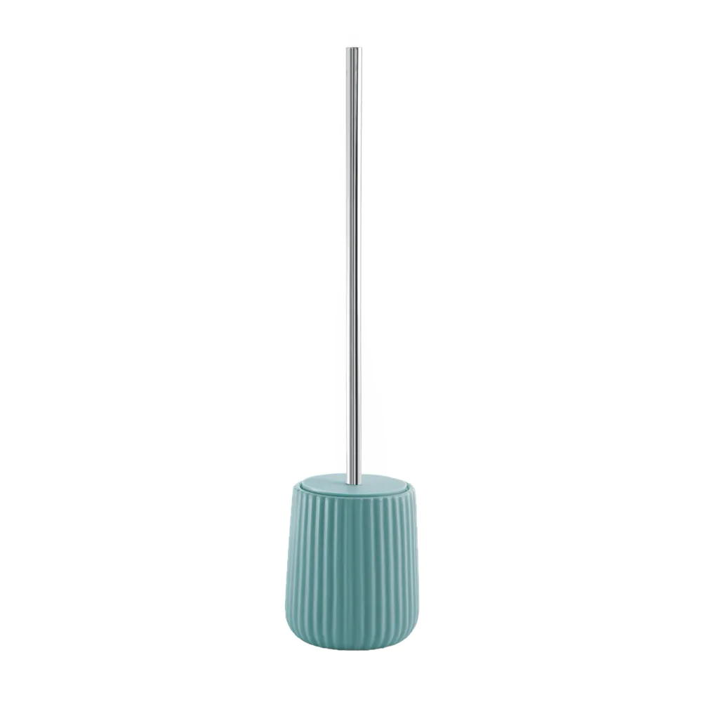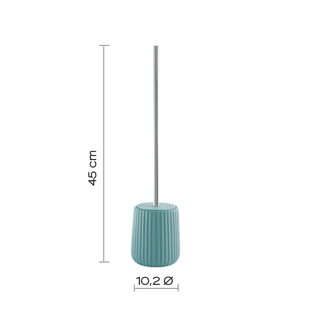 Strutturato con il corpo in ceramica di colore azzurro polvere per apportare un tocco di vivacità all'arredo dell'ambiente bagno e per una pulizia facile e veloce, il manico in acciaio inox e le pratiche setole in nylon.