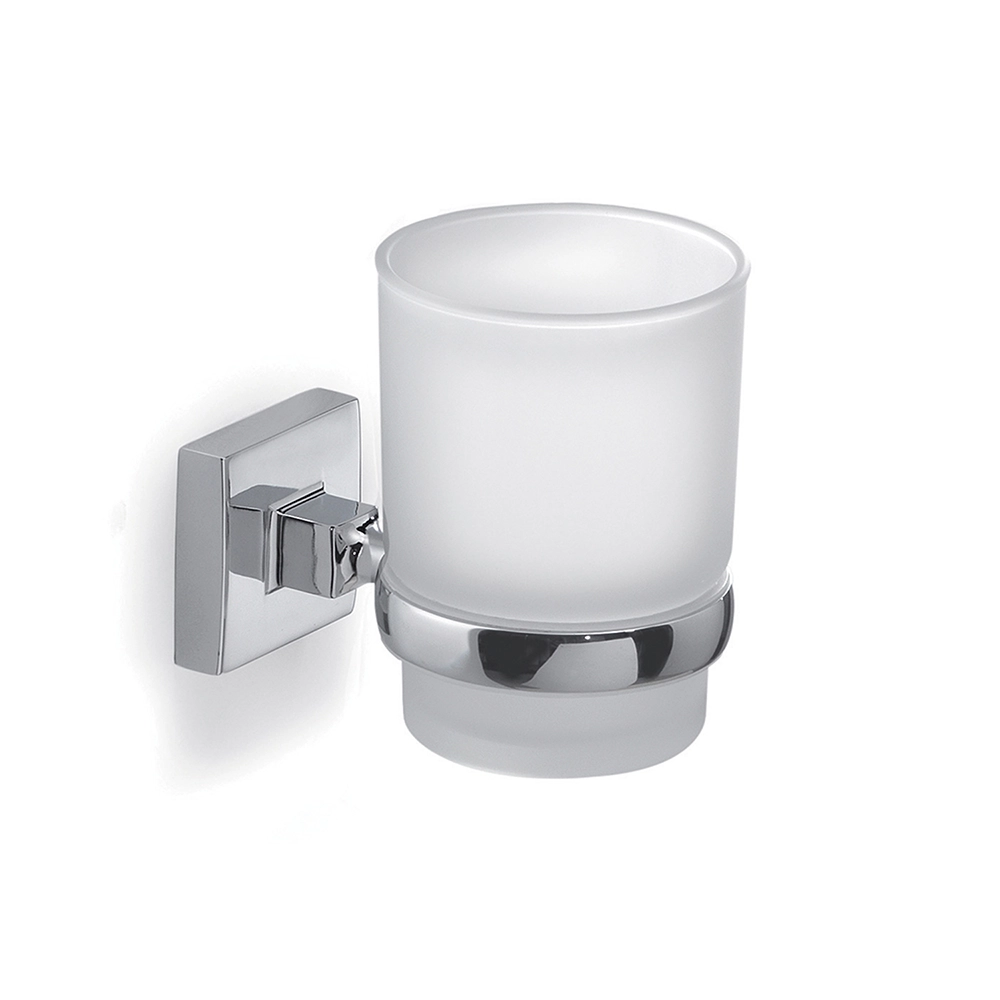 Portaspazzolino a muro Gedy in vetro satinato e acciaio cromato | Olimpo