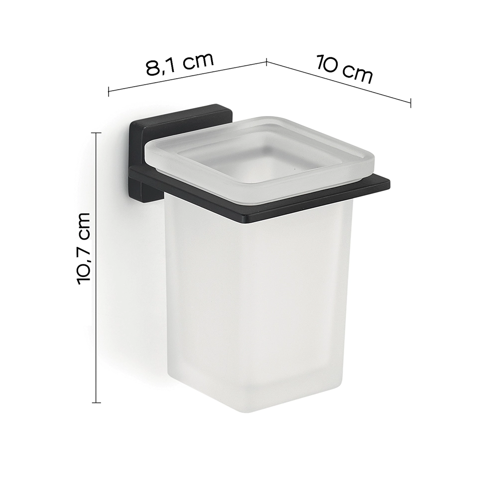 Portaspazzolino a muro Gedy in vetro satinato e acciaio nero opaco | Atena
