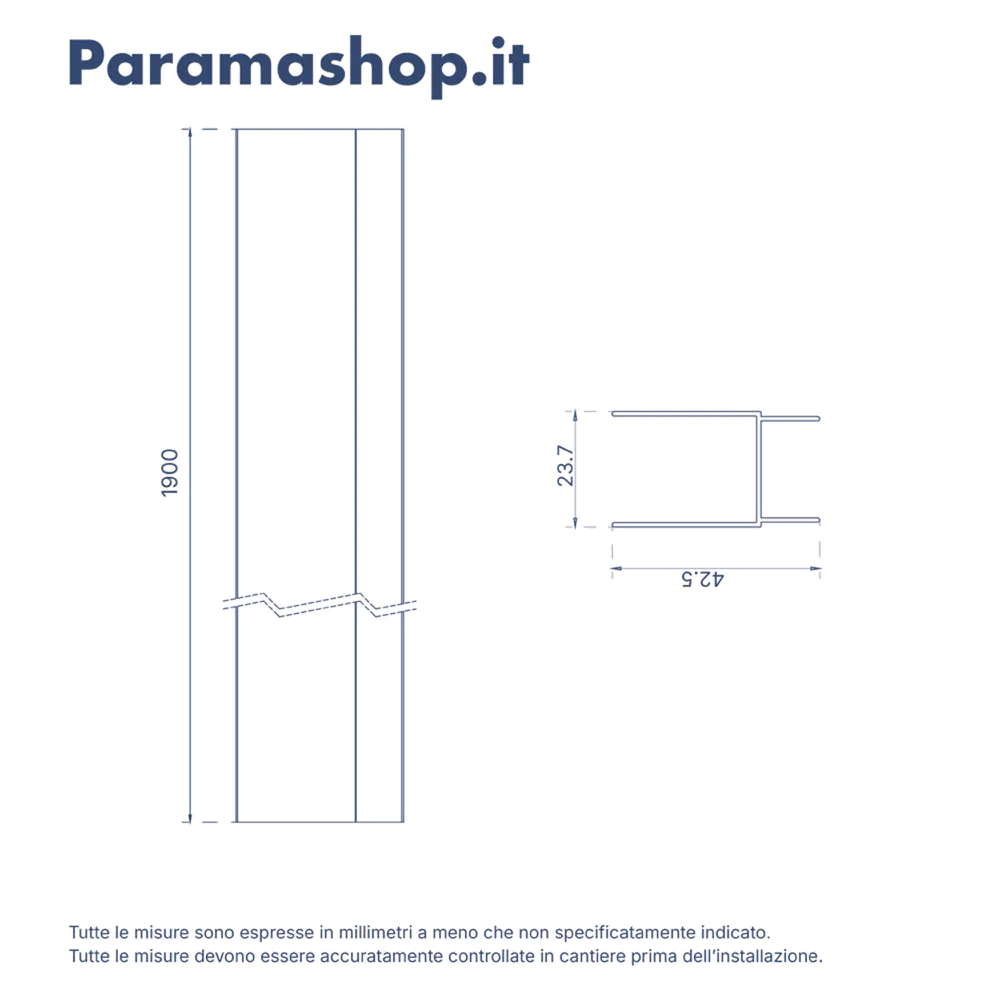 Realizzato in alluminio di alta qualità con finitura nero opaco, il profilo di compensazione è la soluzione ideale per correggere piccoli fuori squadro e garantire una perfetta installazione del box doccia. Compatibile con i box doccia della linea Portofino, permette una regolazione flessibile da 3 a 5 cm, assicurando un’ottima adattabilità anche in presenza di pareti non perfettamente dritte.
