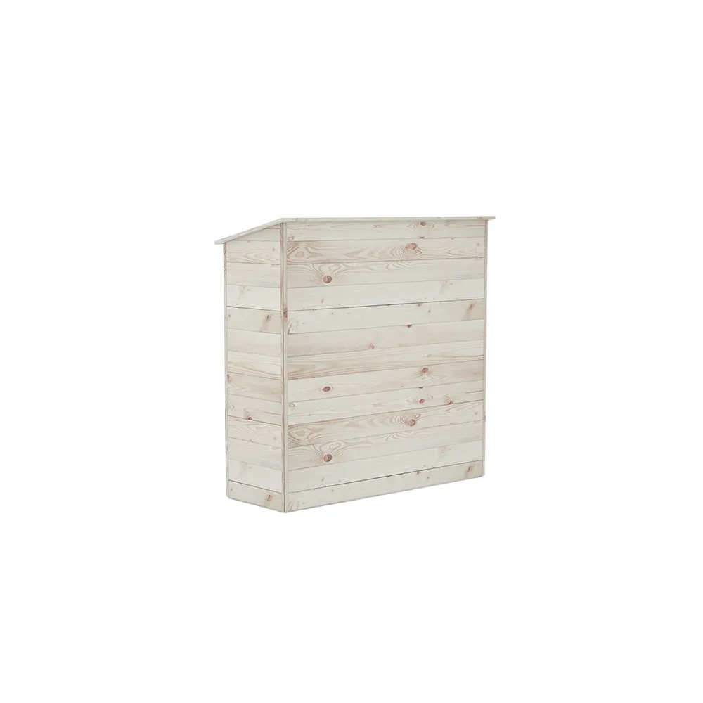 Un ripostiglio compatto, chiuso su tutti i lati, con in più un sistema di scaffalatura pensato per ottimizzare lo spazio interno in modo funzionale e ordinato. Realizzato in abete massello naturale, unisce solidità strutturale e praticità in un design pulito, ideale per giardini, cortili e balconi.