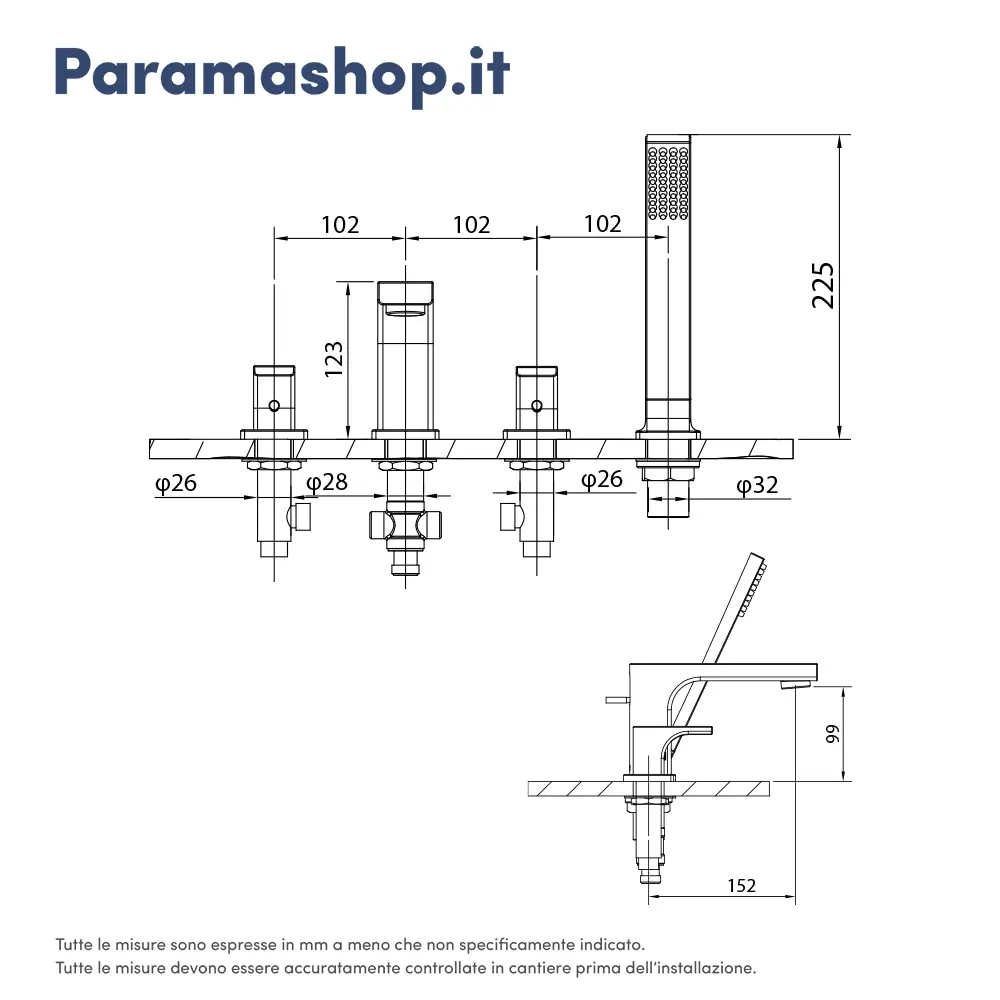 - Montaggio bordo vasca a 4 fori