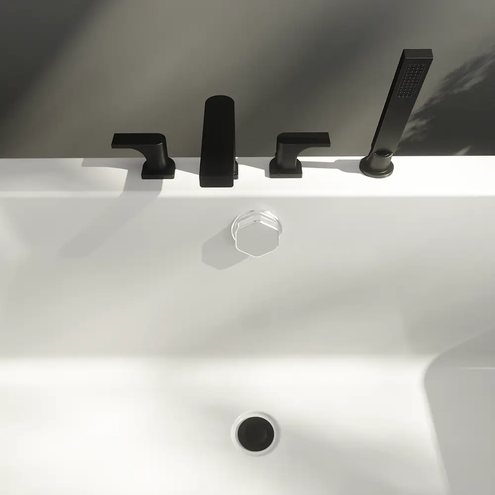 Il design moderno si integra armoniosamente con ambienti bagno dallo stile contemporaneo, trasformando la tua vasca in un elemento di design. Grazie al montaggio a 4 fori sul bordo della vasca, l’installazione del rubinetto è semplice e garantisce un risultato estetico pulito e professionale.