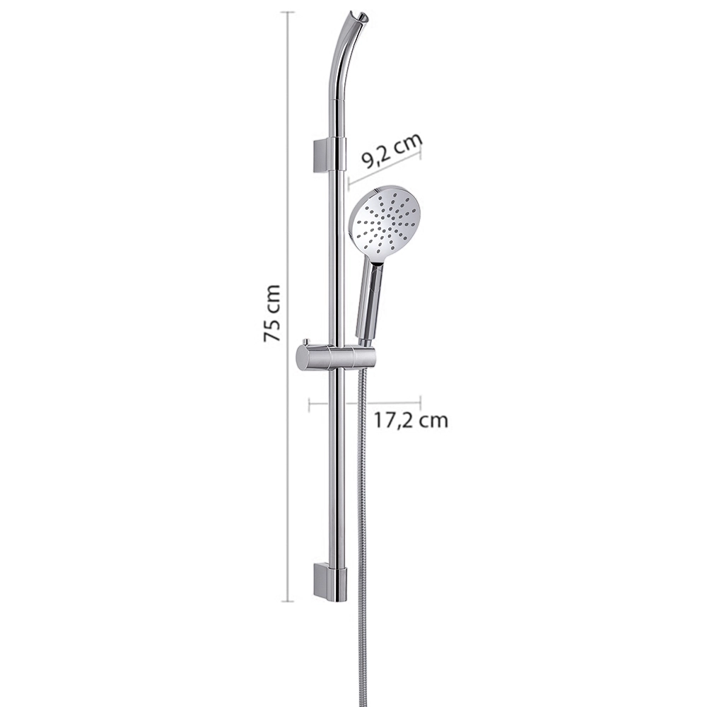 L'asta saliscendi in acciaio inox cromato, con diametro di 25mm e regolabile fino a 75cm, offre praticità e resistenza. Il supporto superiore, posizionato a 90cm, garantisce una stabilità ottimale.