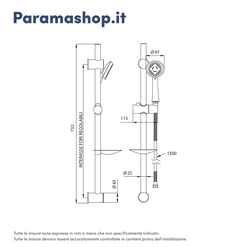 Per un'installazione completa sarà necessario essere in possesso o acquistare un miscelatore ad incasso doccia monocomando o un miscelatore meccanico esterno.
