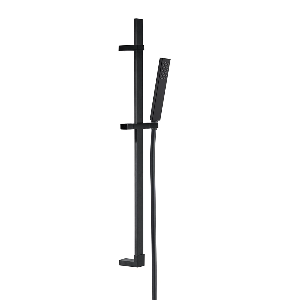 Eleganza essenziale e funzionalità impeccabile si fondono nel saliscendi in ottone nero opaco con doccino e flessibile in PVC da 150 cm. Questo complemento d'arredo dal design squadrato regala un tocco di modernità al tuo bagno, offrendo un'esperienza doccia pratica e piacevole.