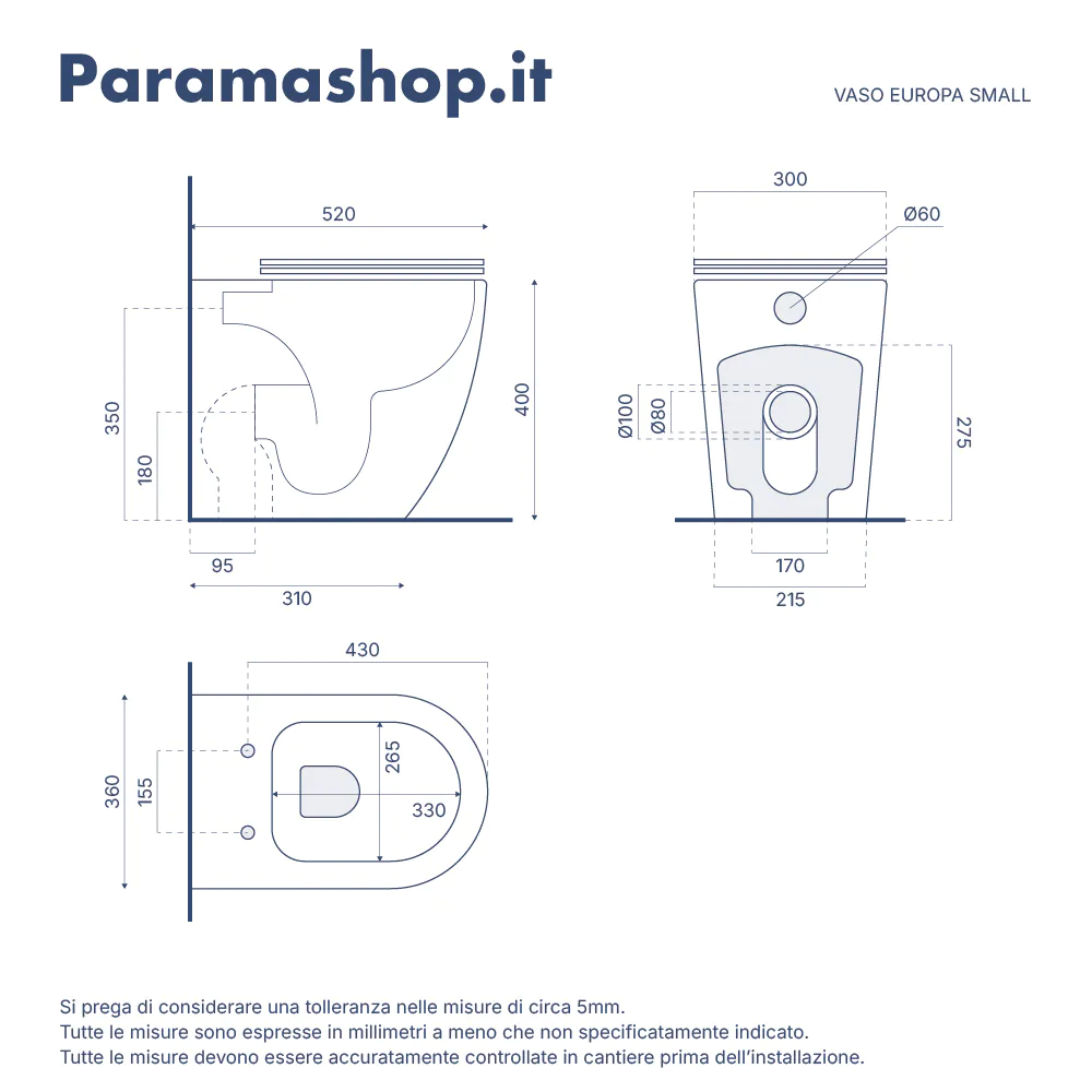 Con la loro lunghezza di 52 cm, gli Europa Small sono perfettamente adattabili ad ogni tipologia di ambiente bagno, anche in presenza di spazi ridotti. Il vaso è dotato di un pratico sedile soft-close per garantirne una chiusura silenziosa e delicata.