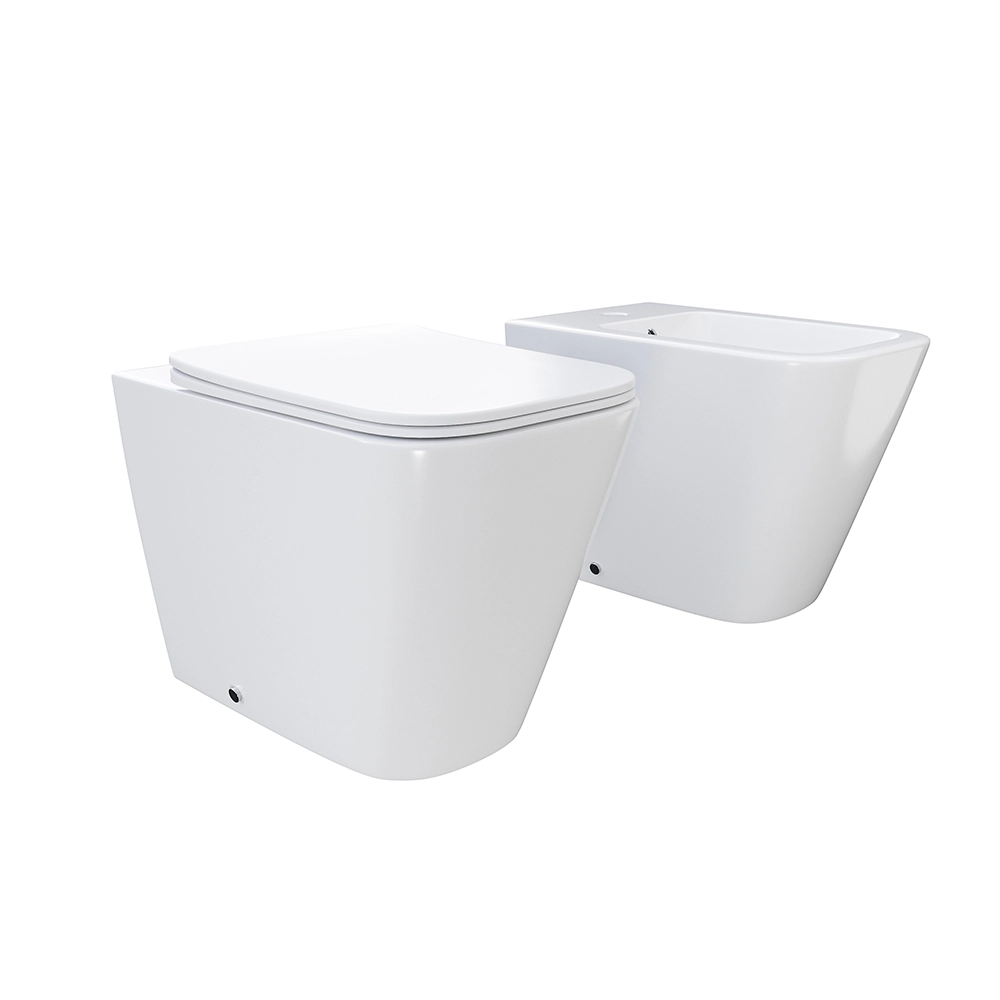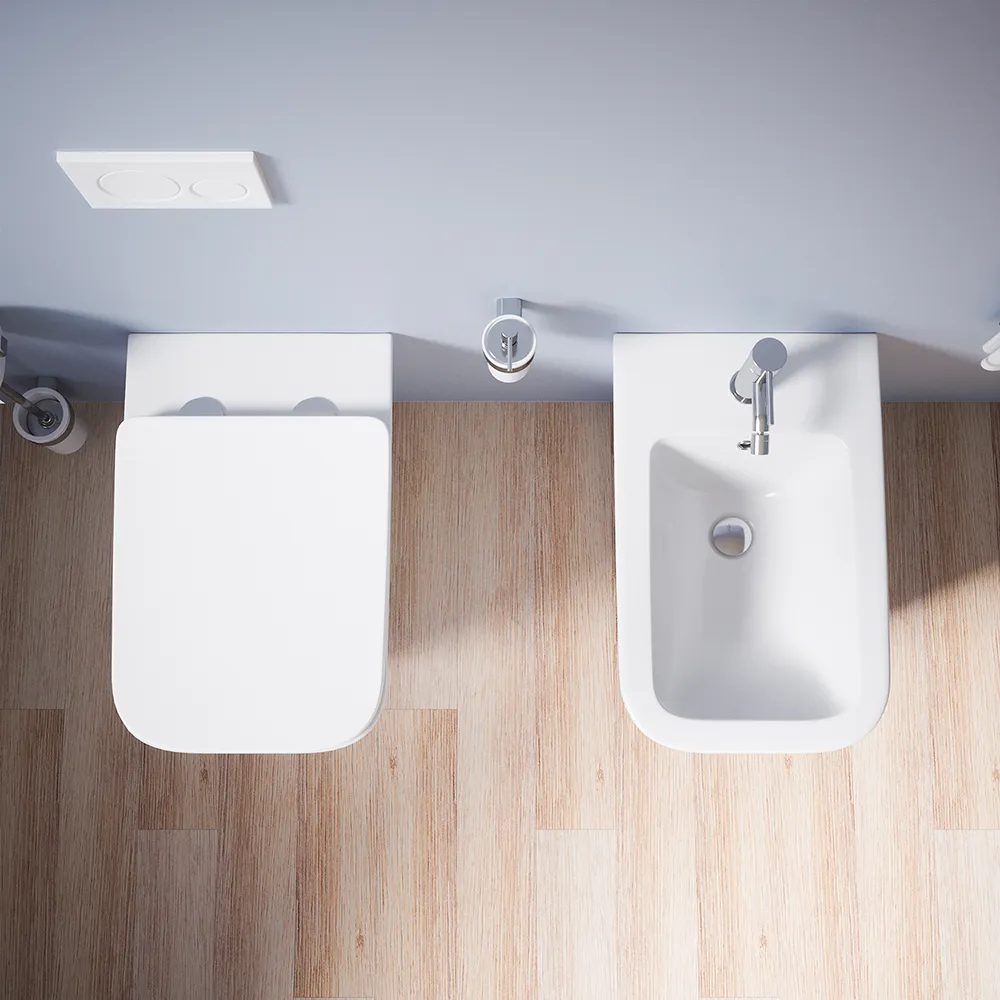 Sanitari filomuro in ceramica bianco lucido vaso rimless sedile soft-close e bidet | Kyoto