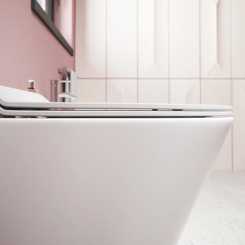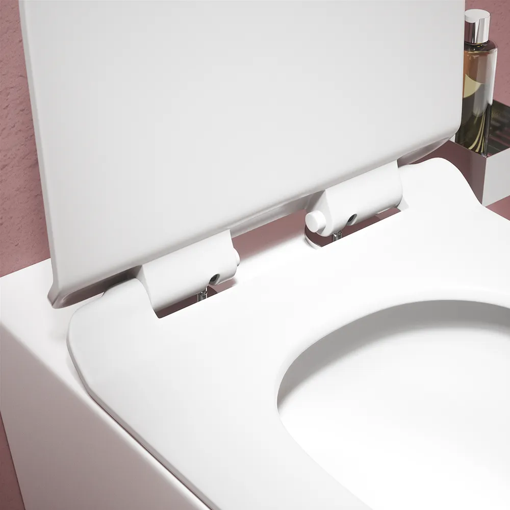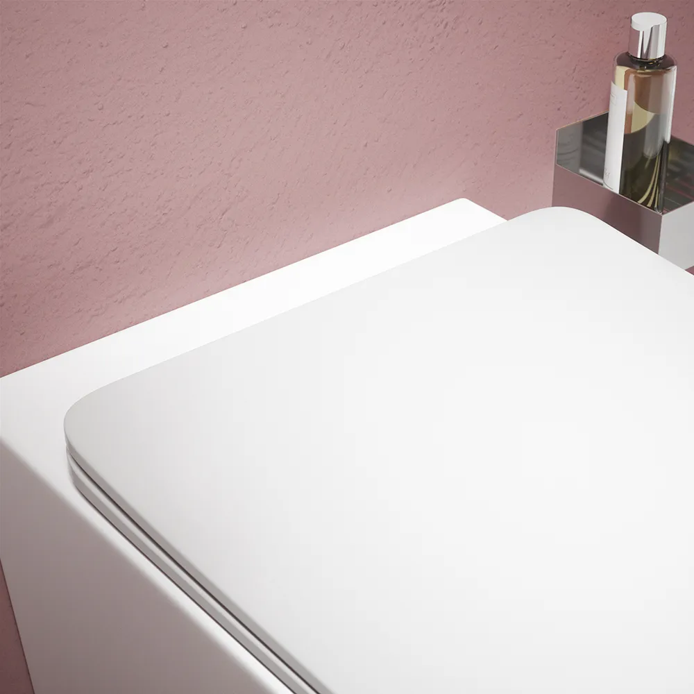 La ceramica di alta qualità utilizzata in fase di produzione e la finitura nell'intramontabile bianco lucido rendono questa coppia di sanitari il connubio perfetto di qualità ed estetica. Una caratteristica, infine, molto apprezzata dagli utenti è la chiusura rallentata del sedile il quale non si chiuderà più bruscamente ma sarà accompagnato dolcemente dalle cerniere stesse fino alla completa chiusura.