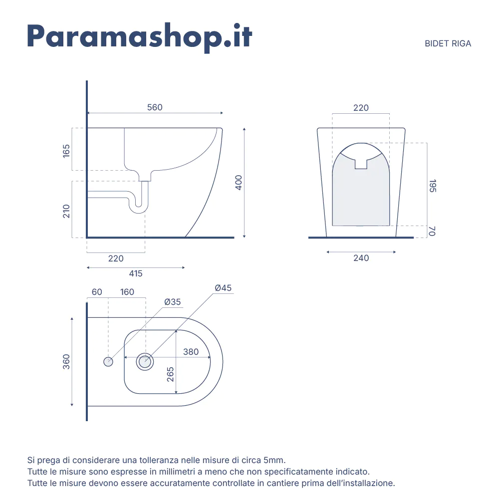 | Foro di scarico: | A parete, A pavimento con curva tecnica |
