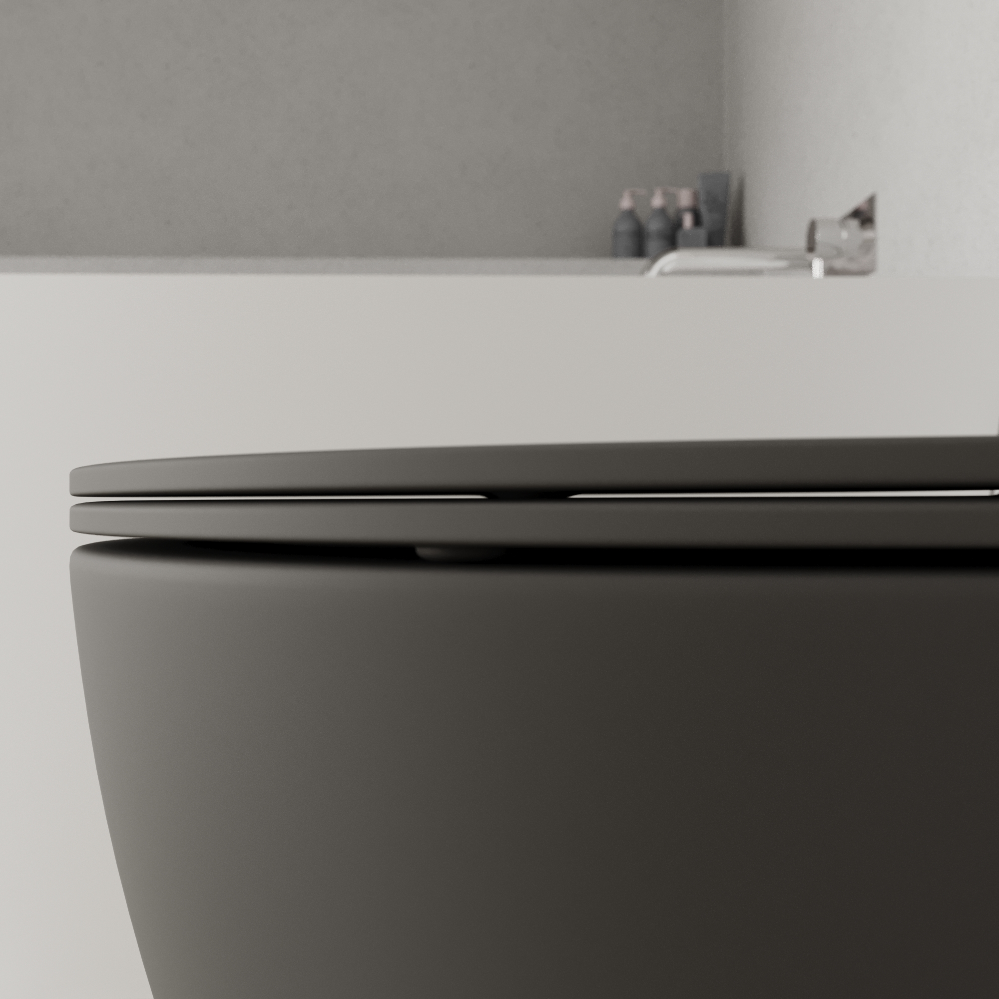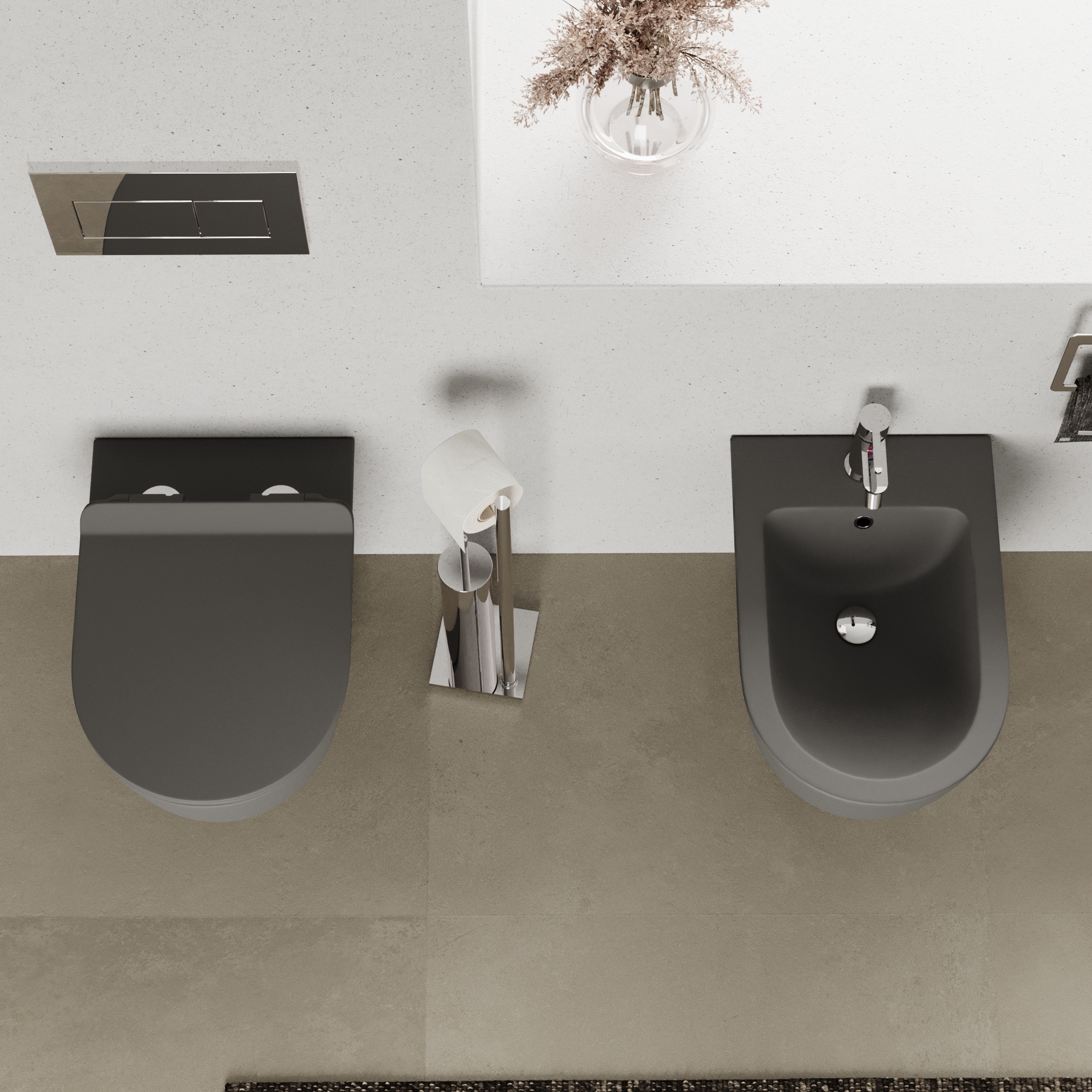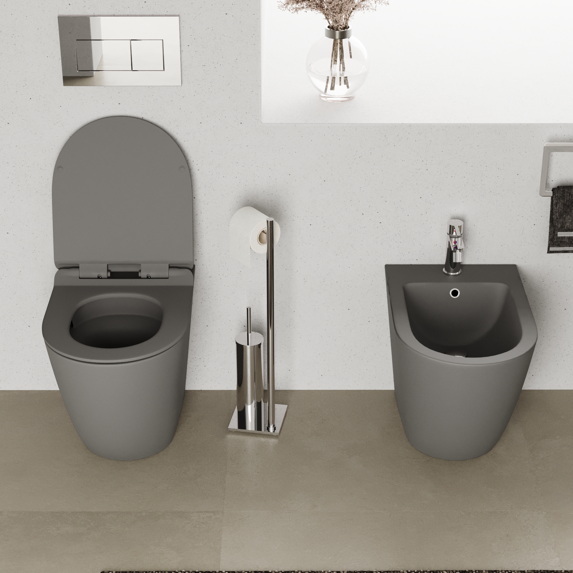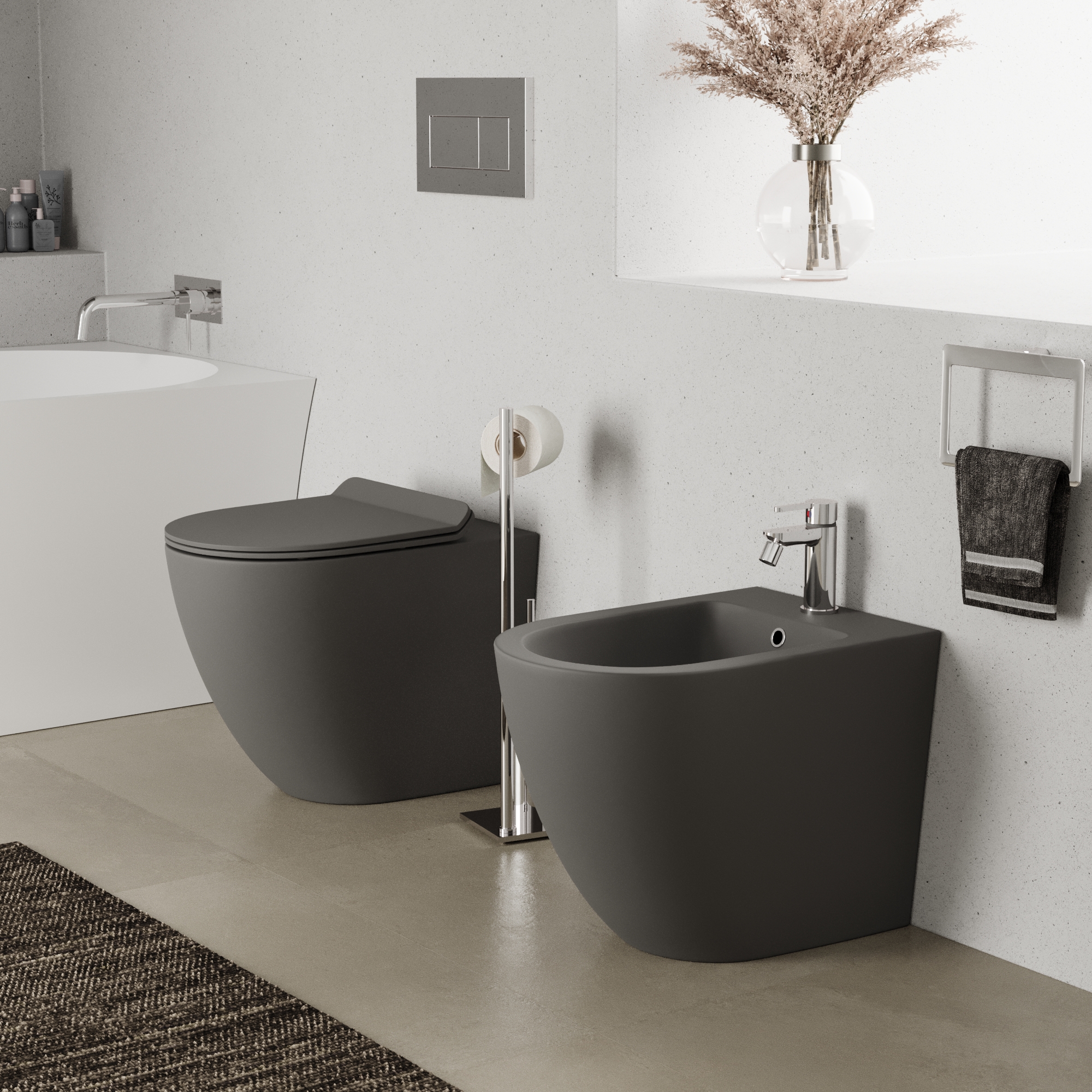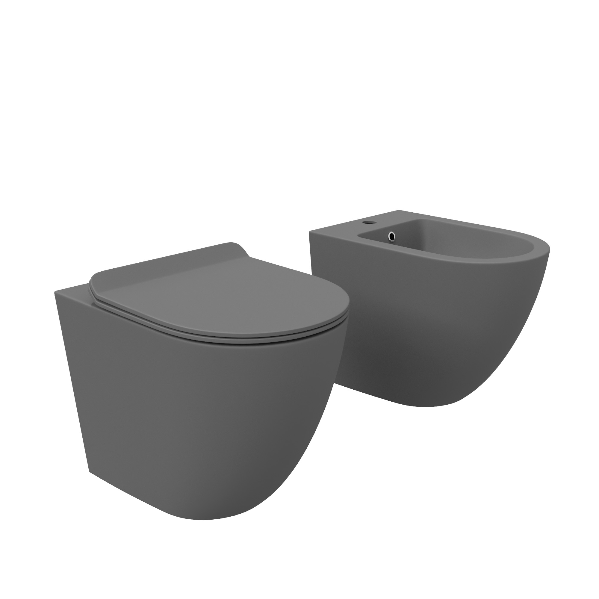 Sanitari filomuro in ceramica grigio opaco vaso tornado silent flush sedile soft-close e bidet | Sydney