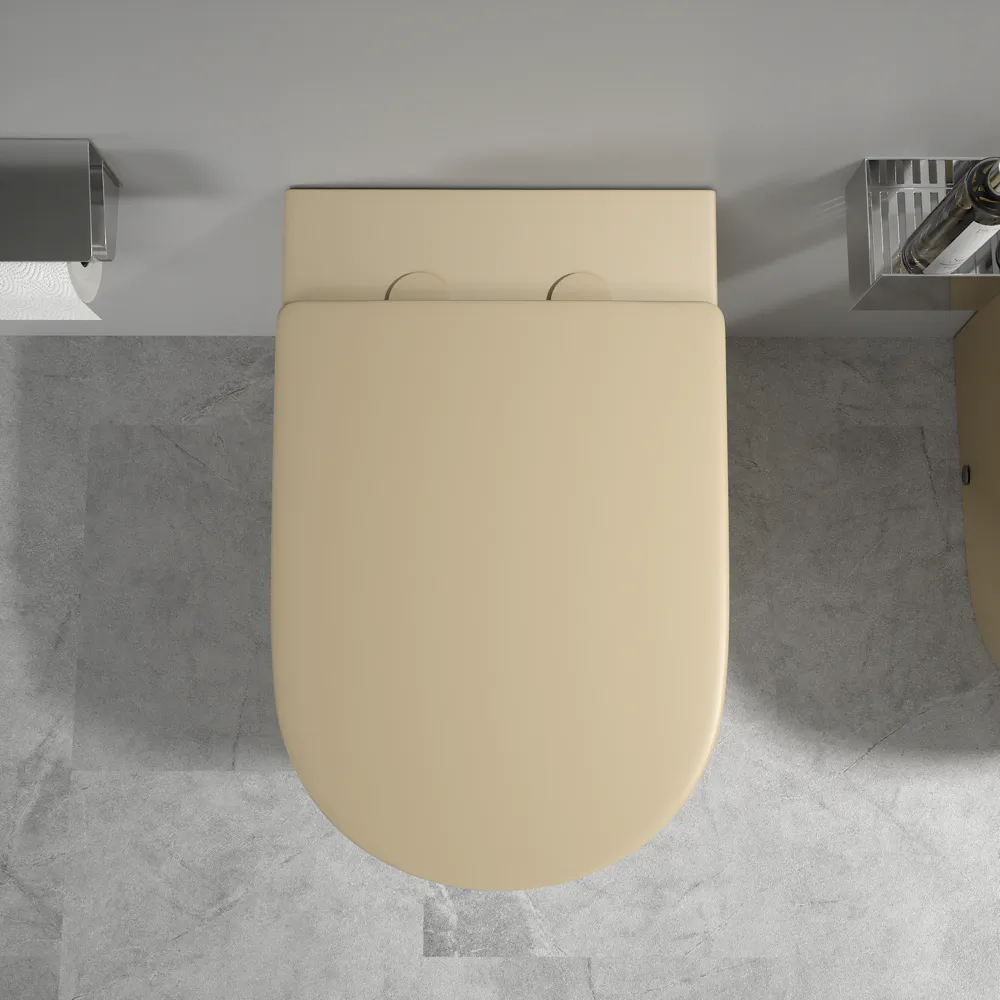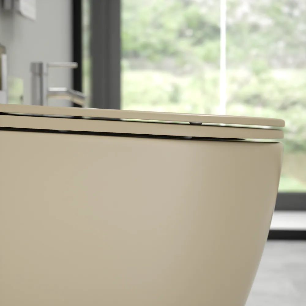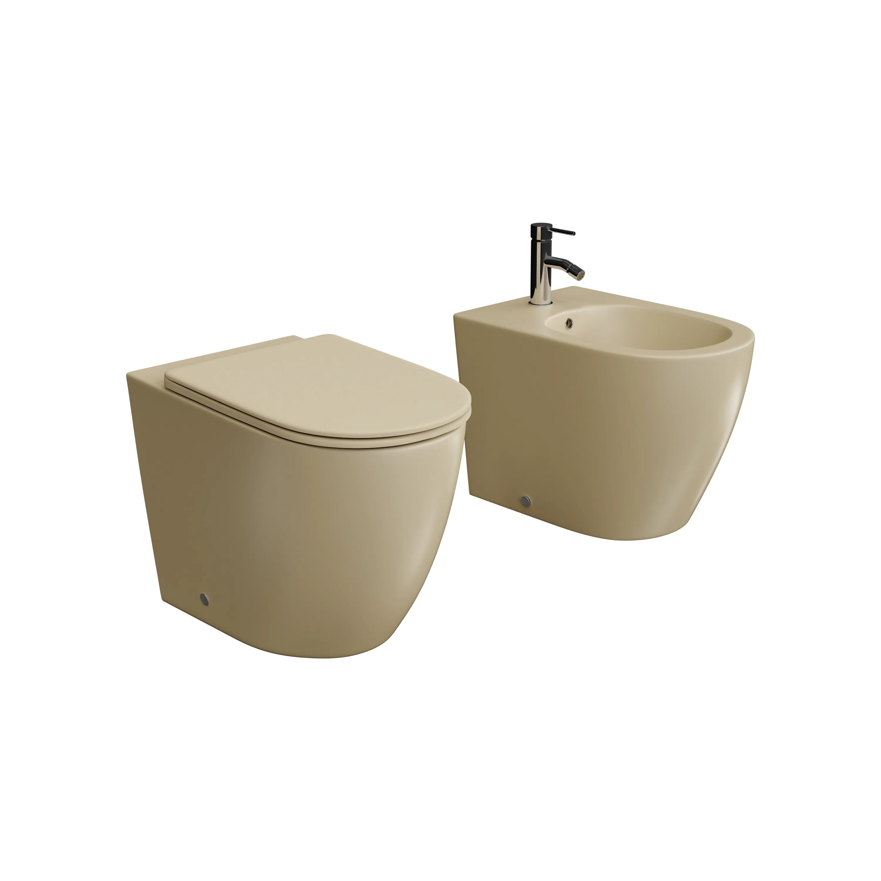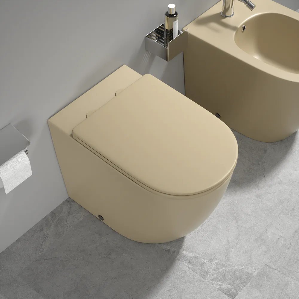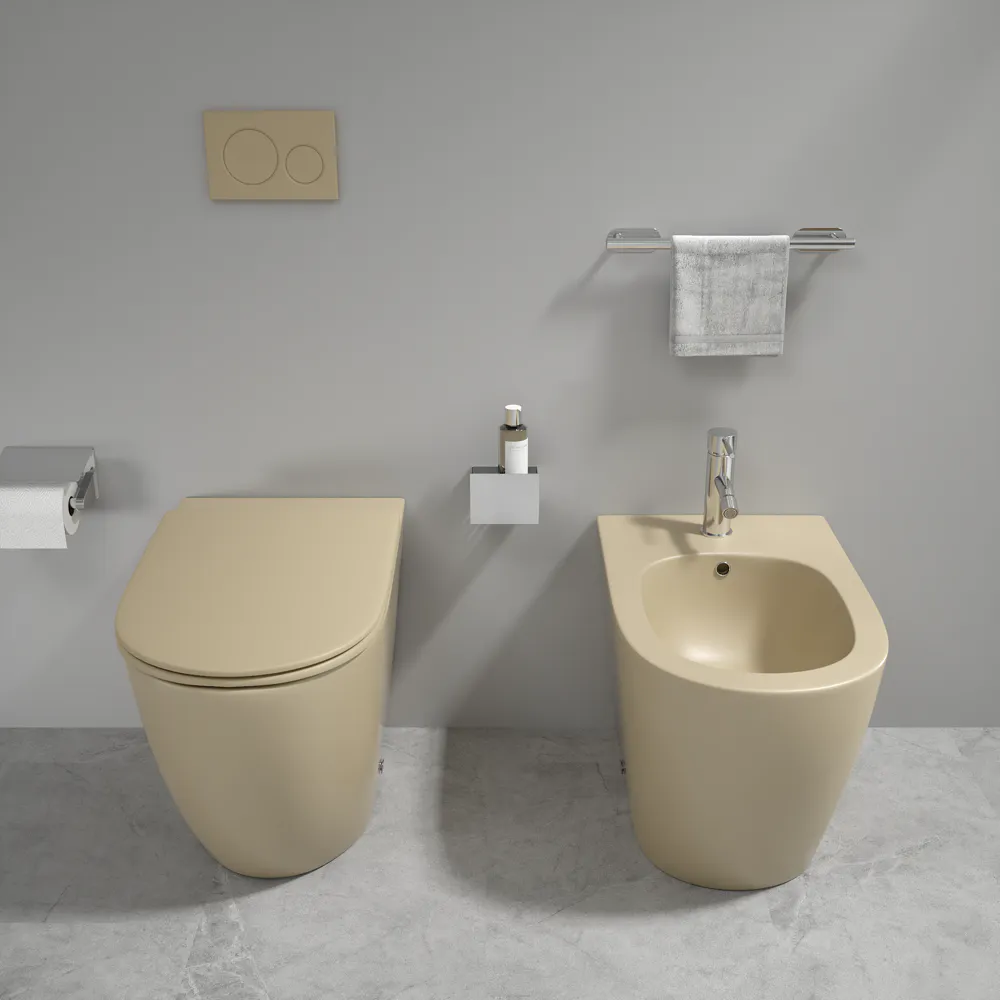Sanitari filomuro in ceramica khaki opaco vaso rimless sedile soft-close e bidet | Europa