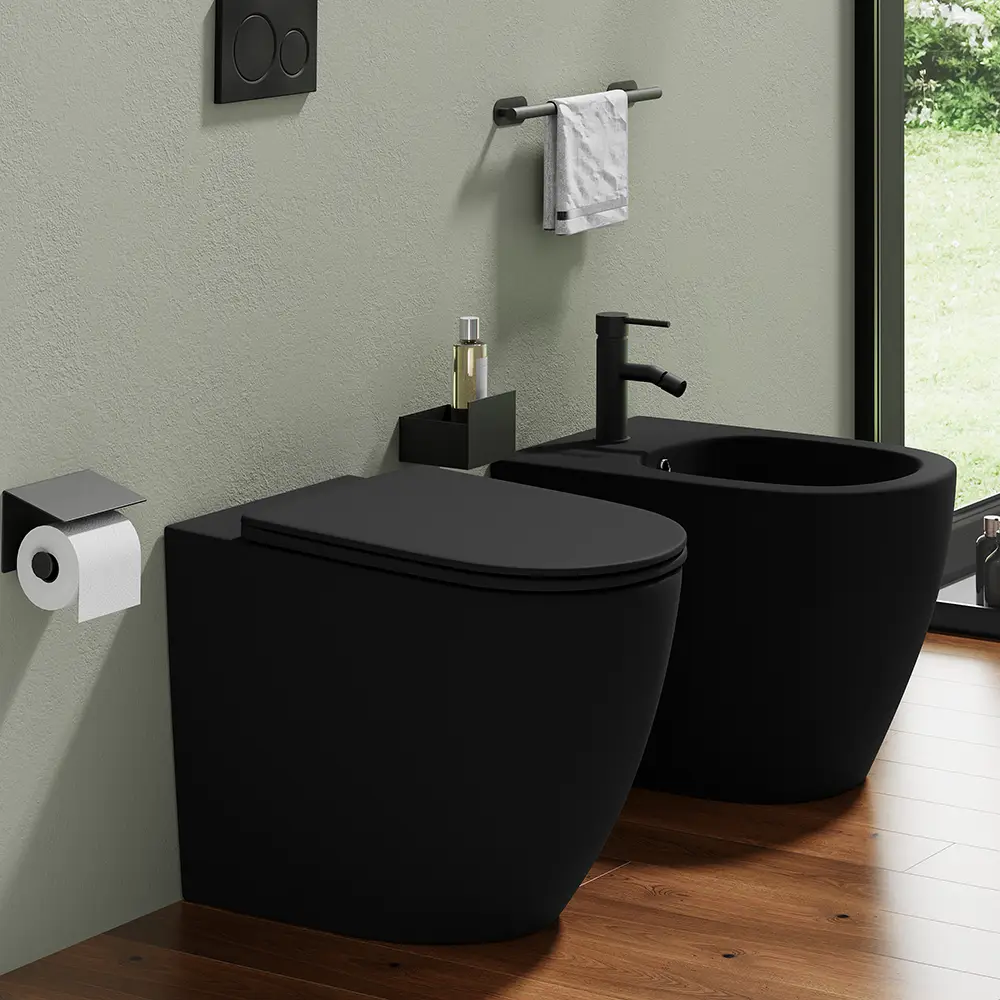 Sanitari filomuro in ceramica nero opaco vaso rimless con copriwc soft-close e bidet | Europa